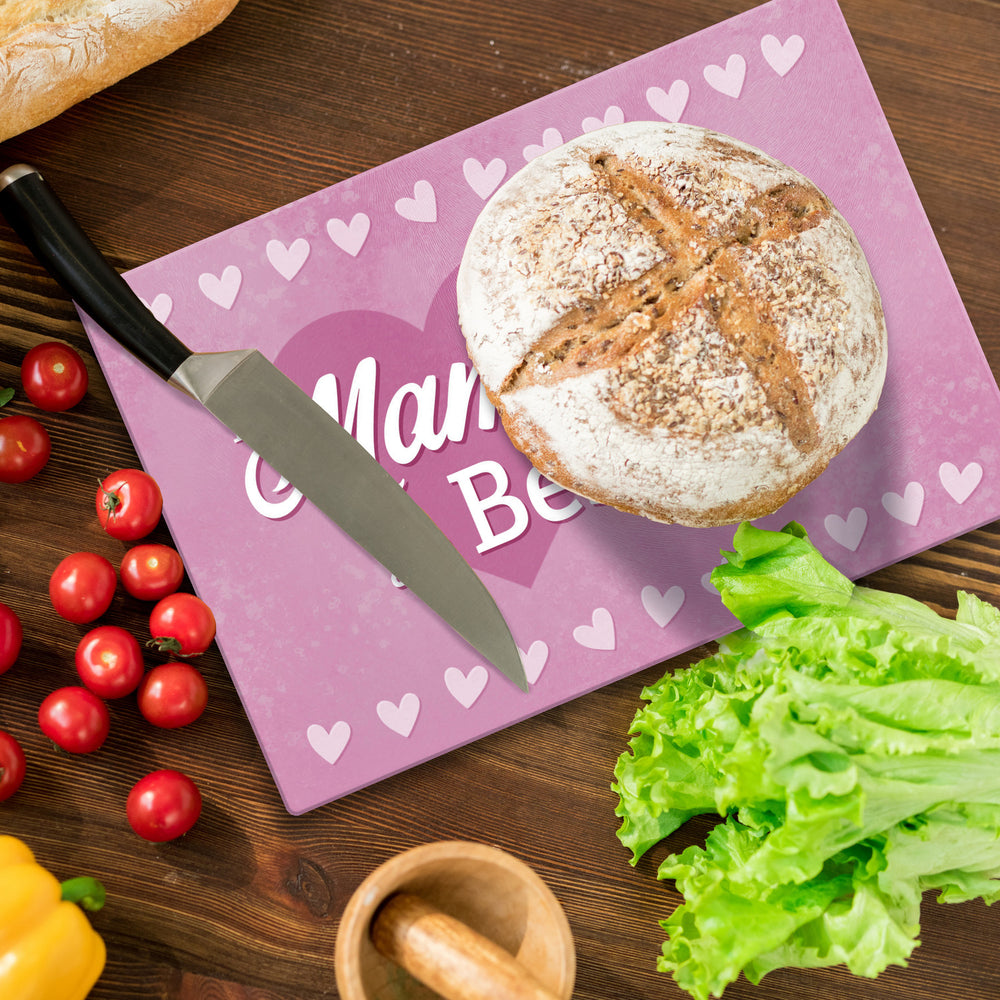 Herzen Schneidebrett aus Glas Glas mit Spruch Beste Mama