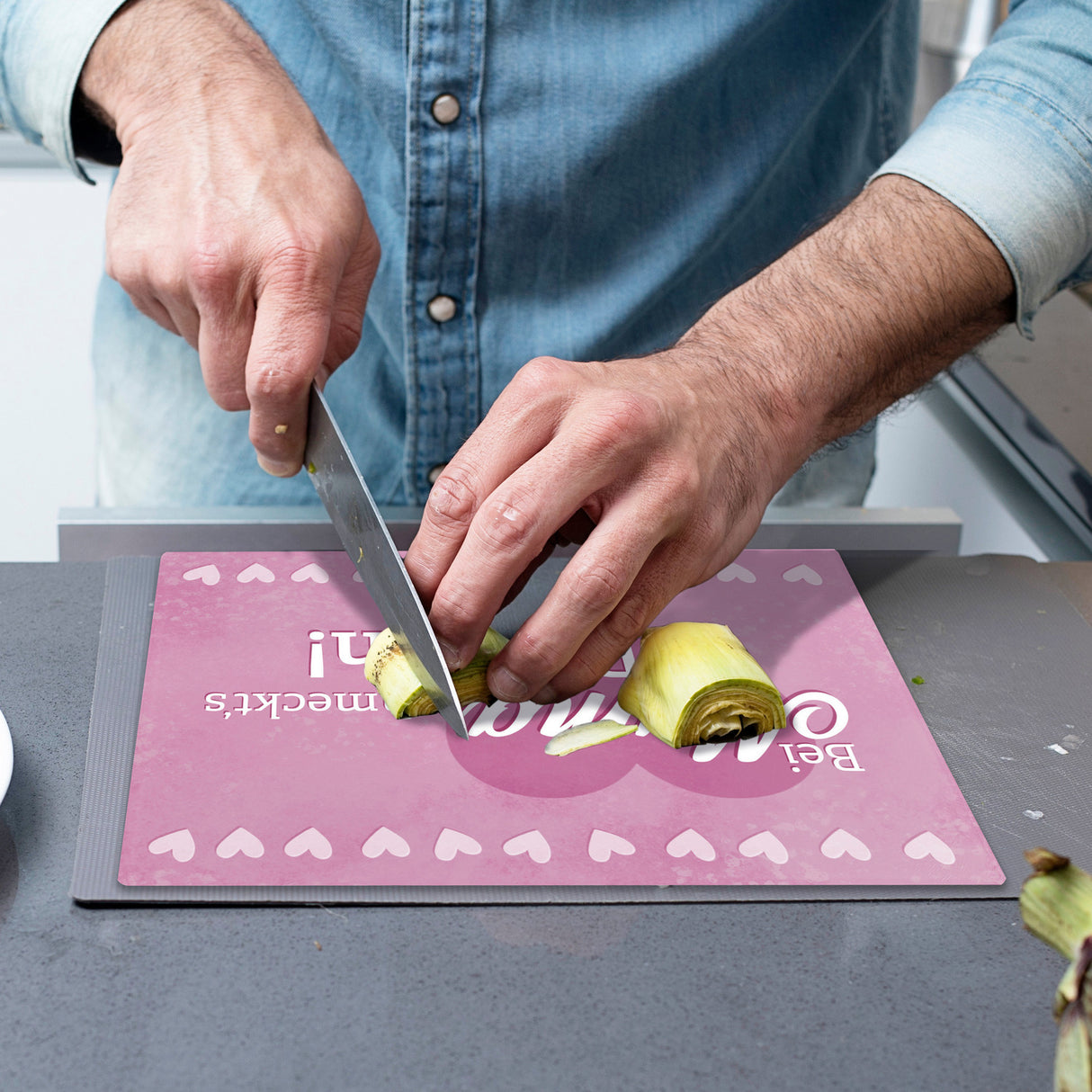 - Das Schneidebrett mit Herzmotiv ist ein wahrer Hingucker in jeder Küche. Es verbindet Nützlichkeit mit Stil und ist ideal für alle Hobby- und Profiköche. Mit seiner dunkelrosa Herz und kleinen rosa Herzen vor pinkem Hintergrund bringt es Farbe und Liebe in die Zubereitung jeder Mahlzeit.