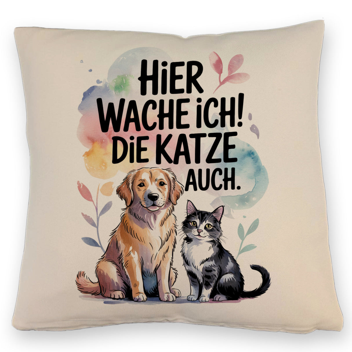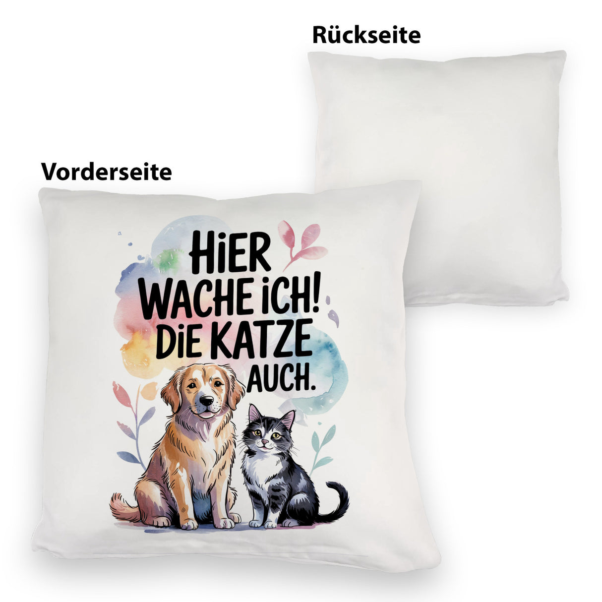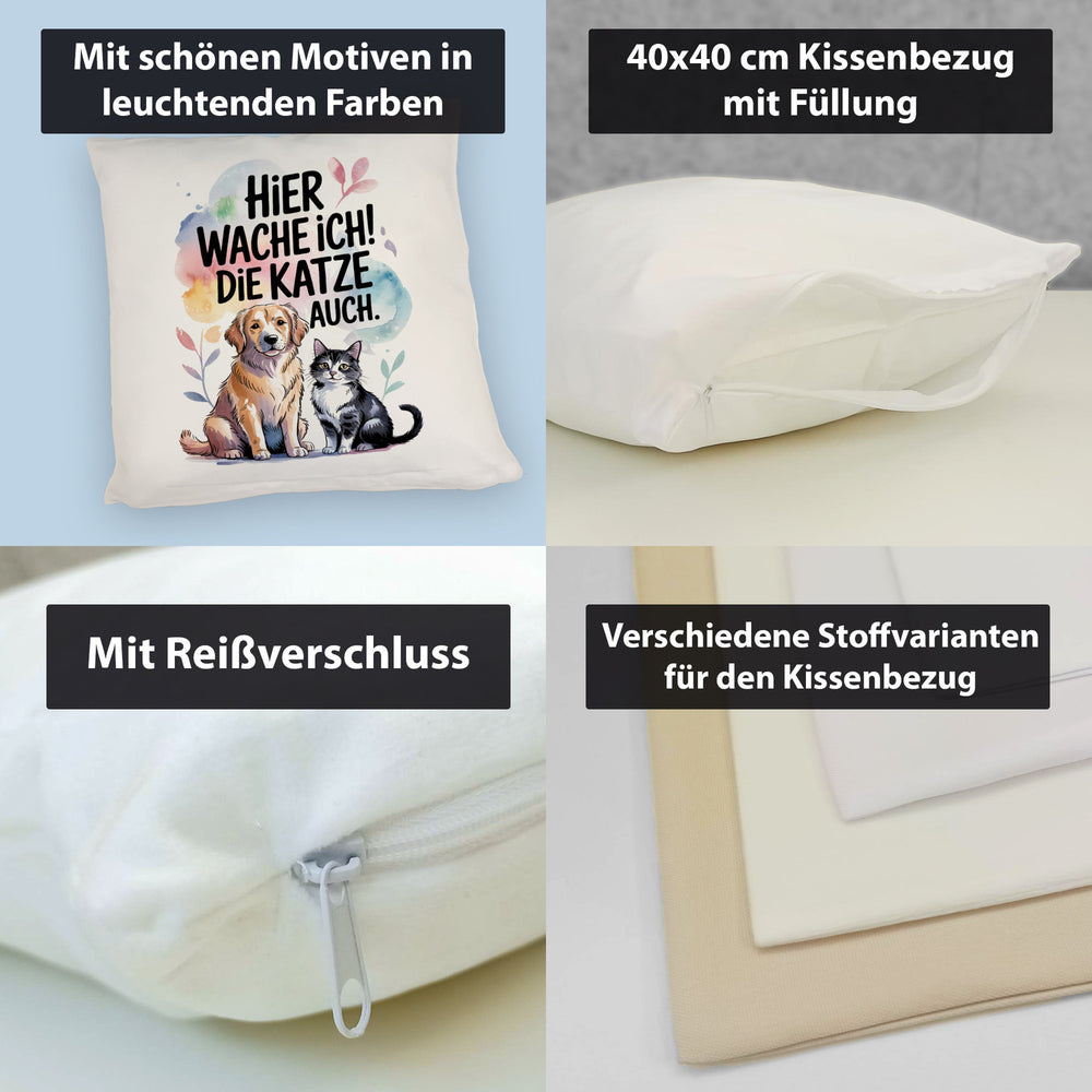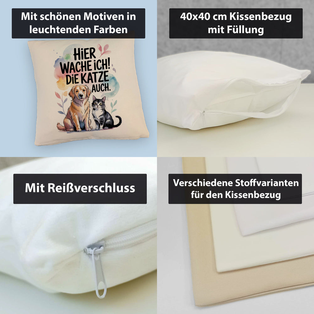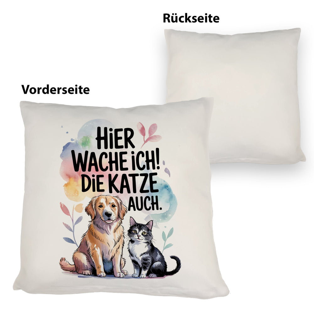 - 1x Hier wache ich Hund und Katze Kissen in der gewählten Ausführung