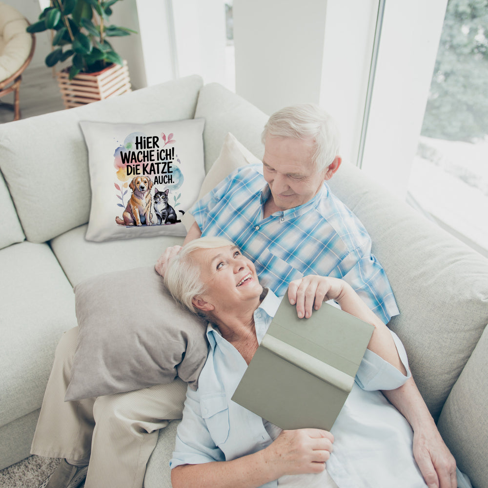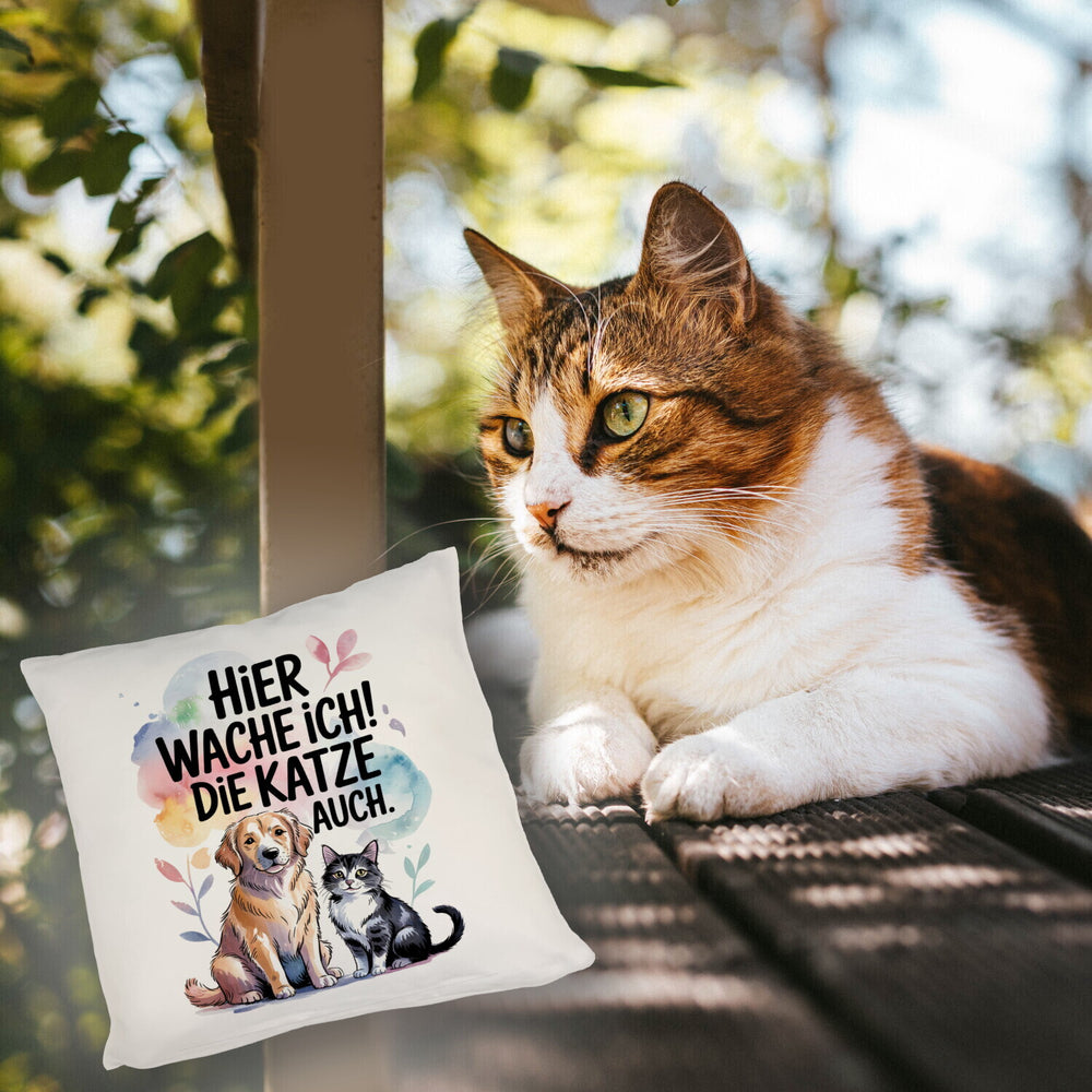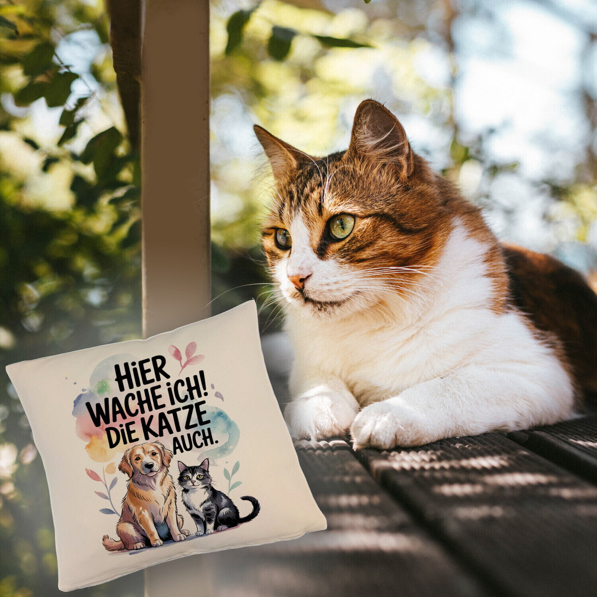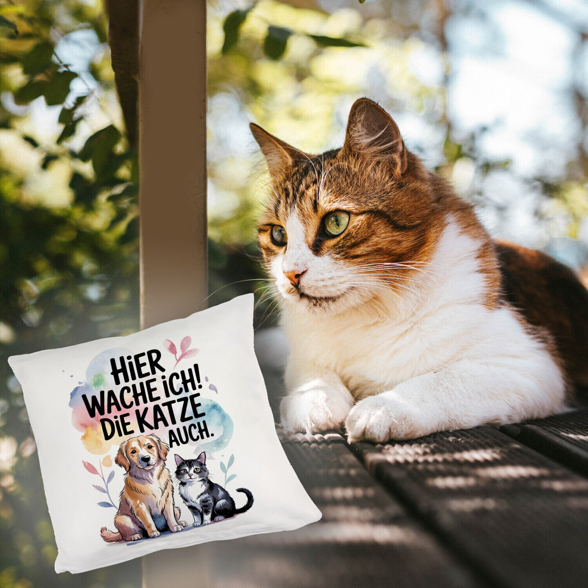 - 1x Hier wache ich Hund und Katze Kissen in der gewählten Ausführung