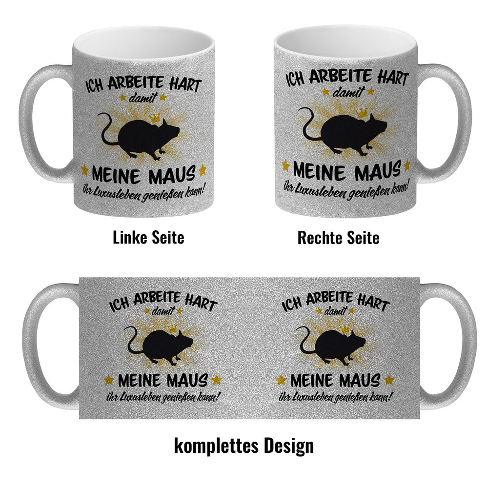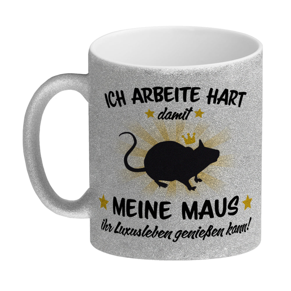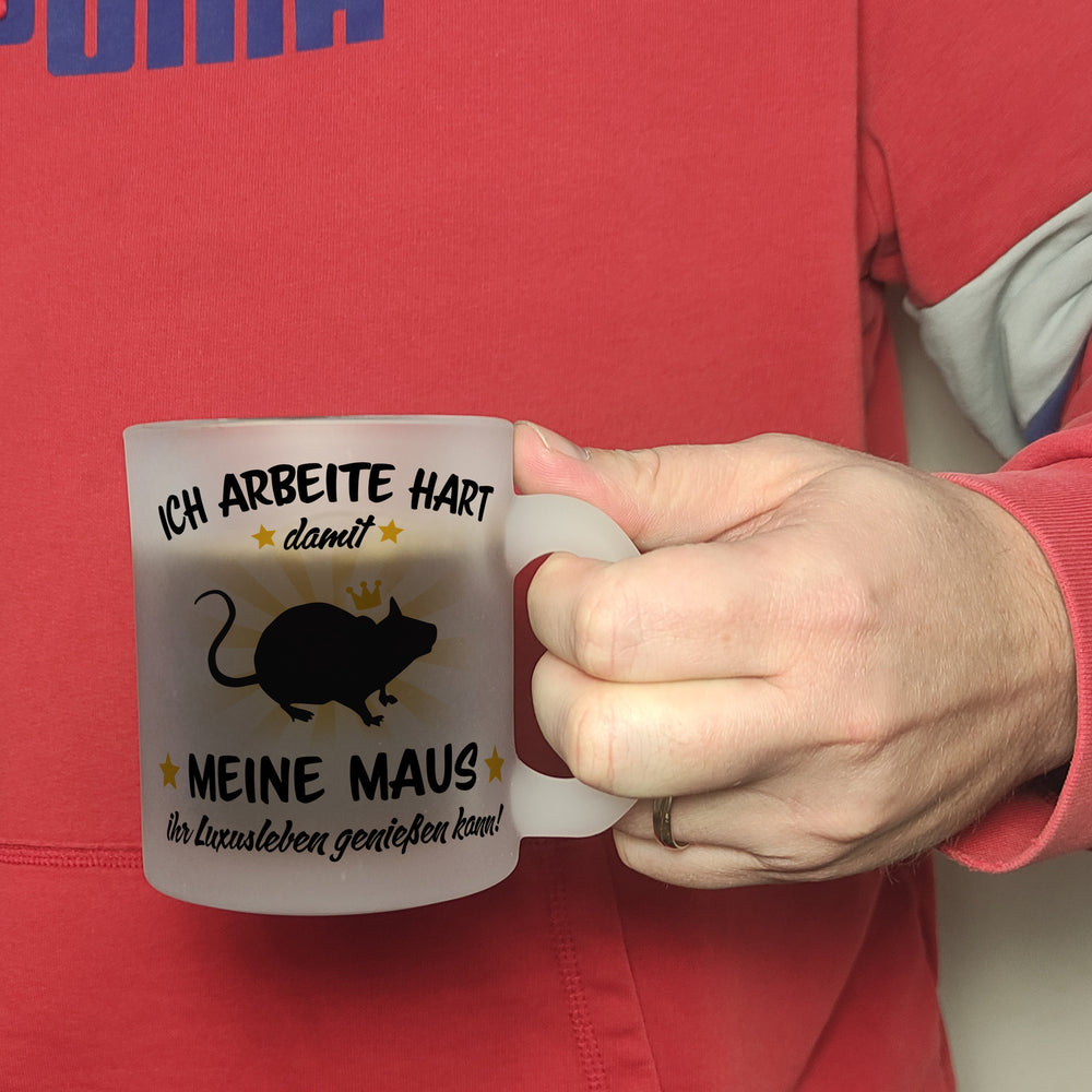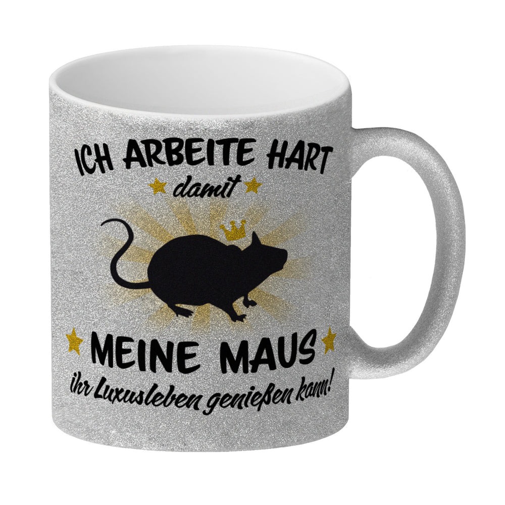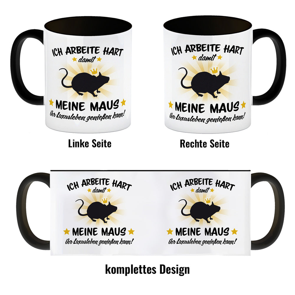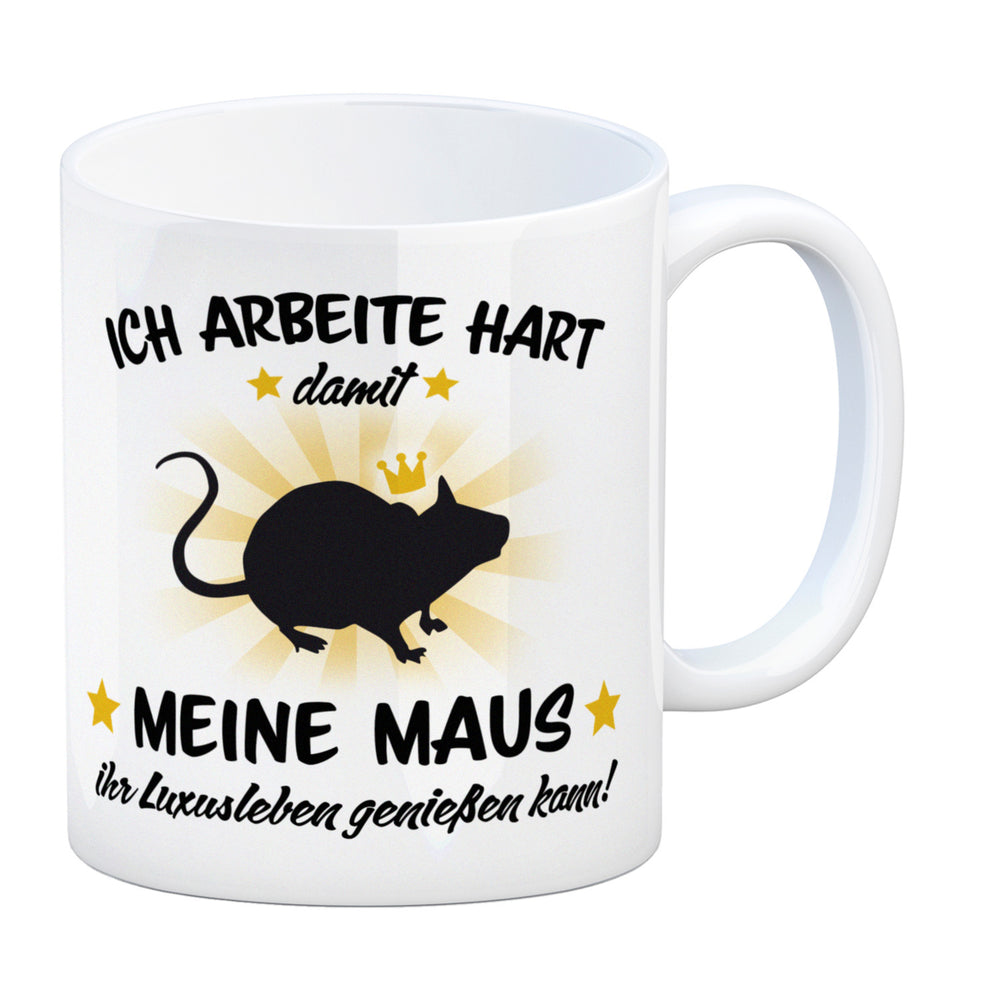 - 1x Ich arbeite hart für das Luxusleben meiner Maus Haustier Kaffeebecher in der gewählten Ausführung