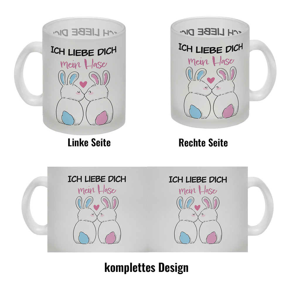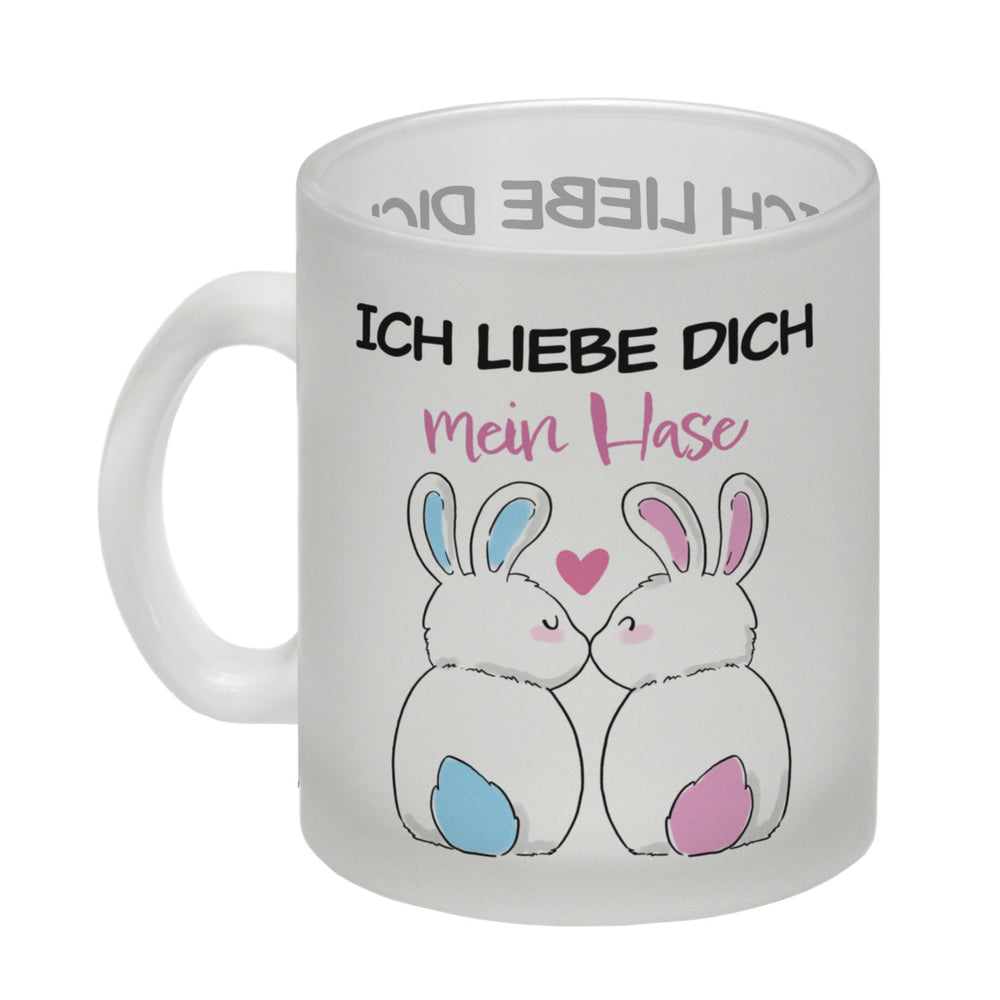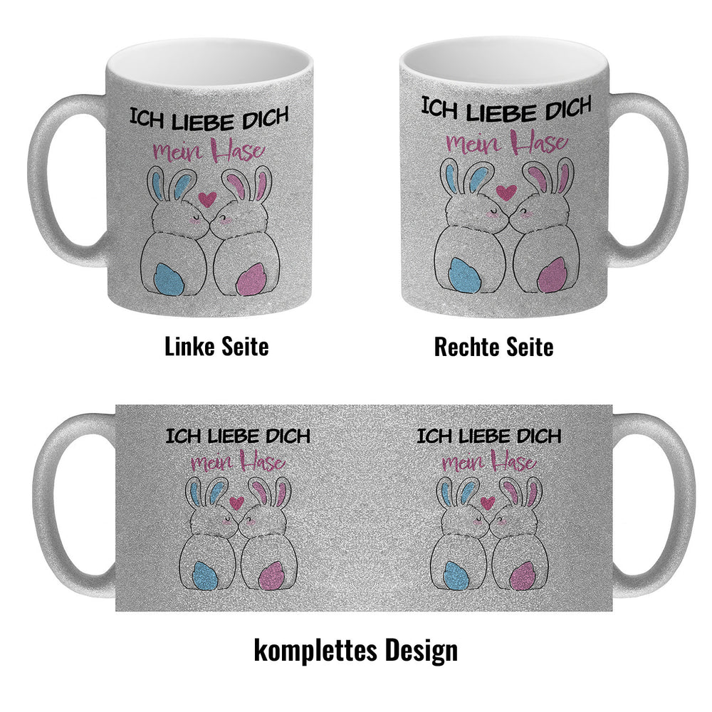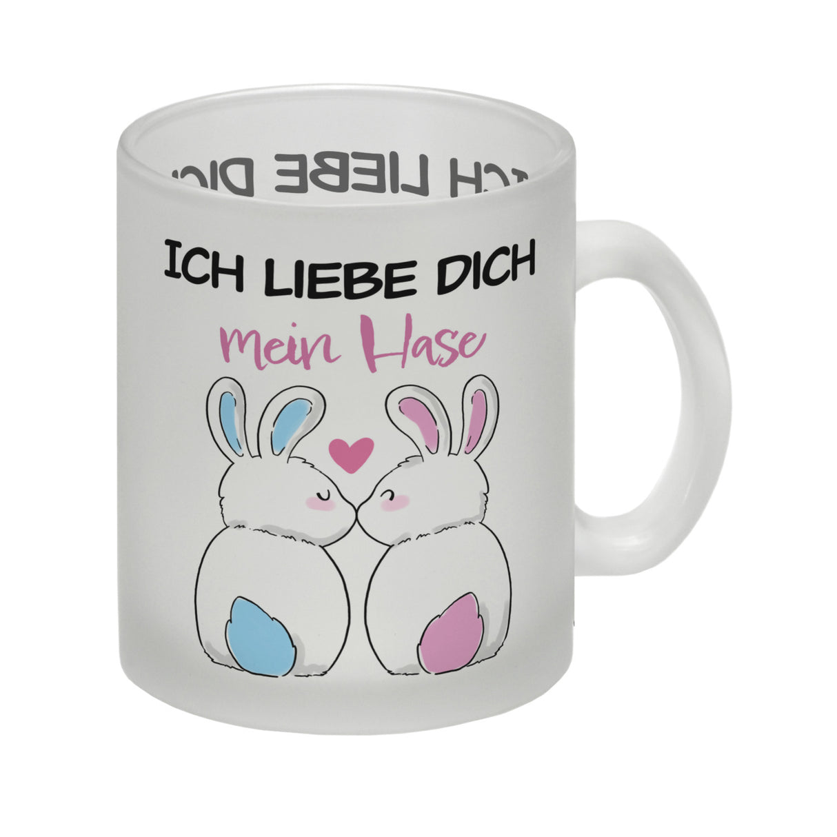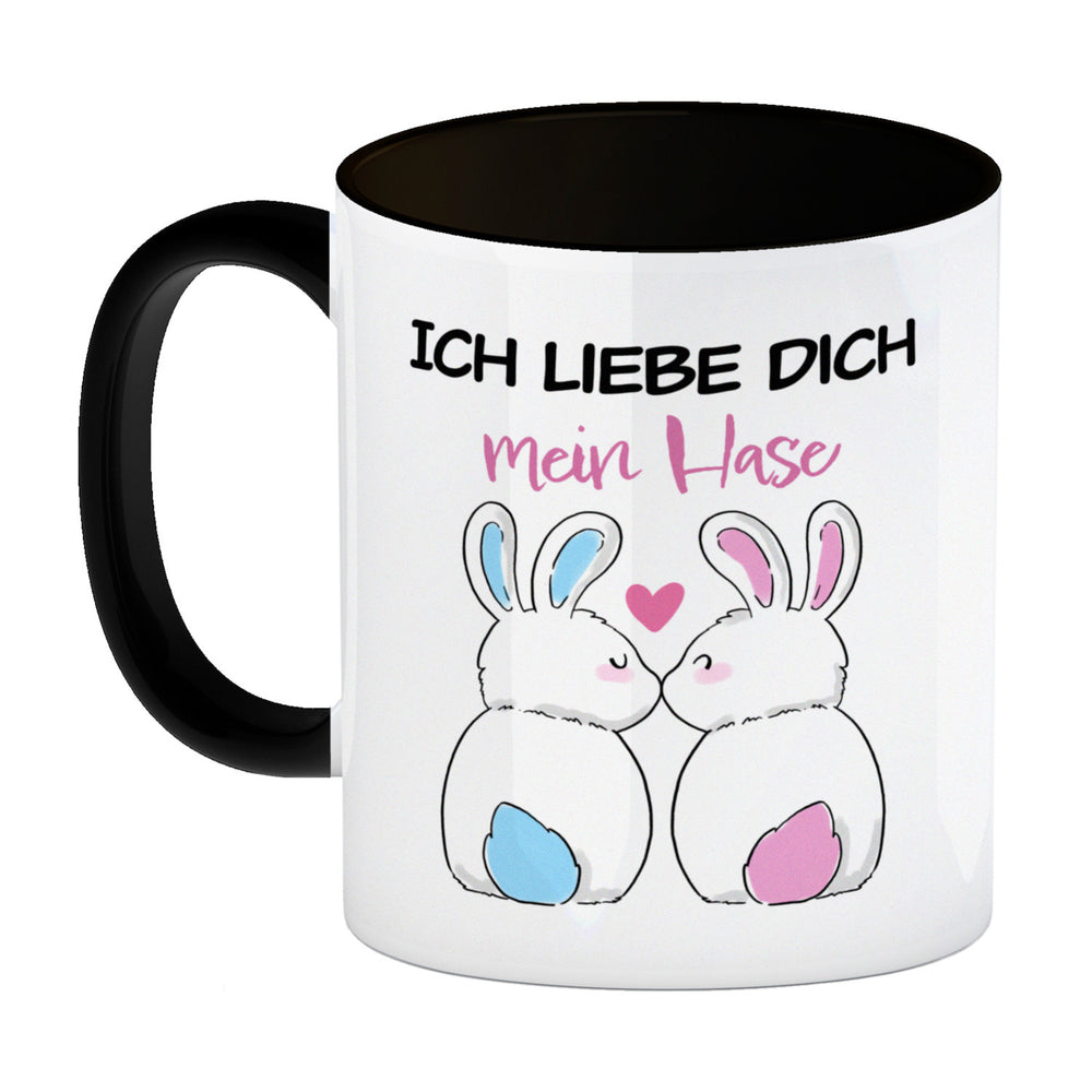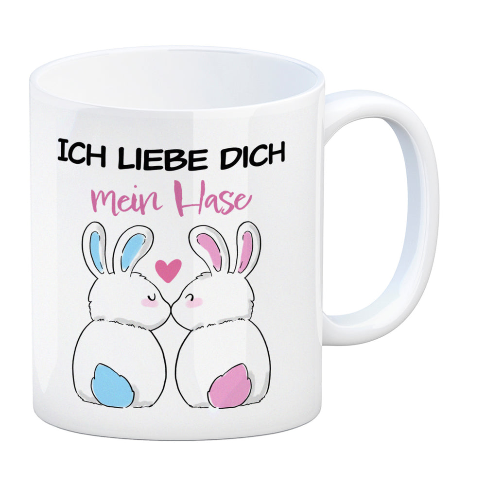 - 1x Ich liebe dich mein Hase Kaffeebecher mit küssendem Hasenpaar in der gewählten Ausführung
