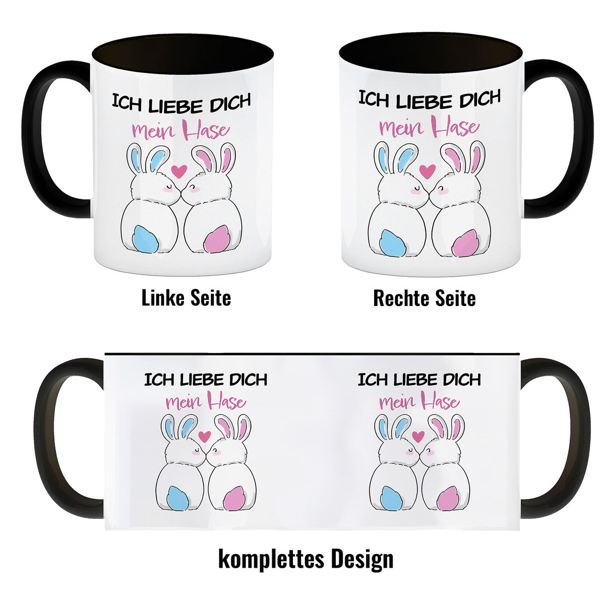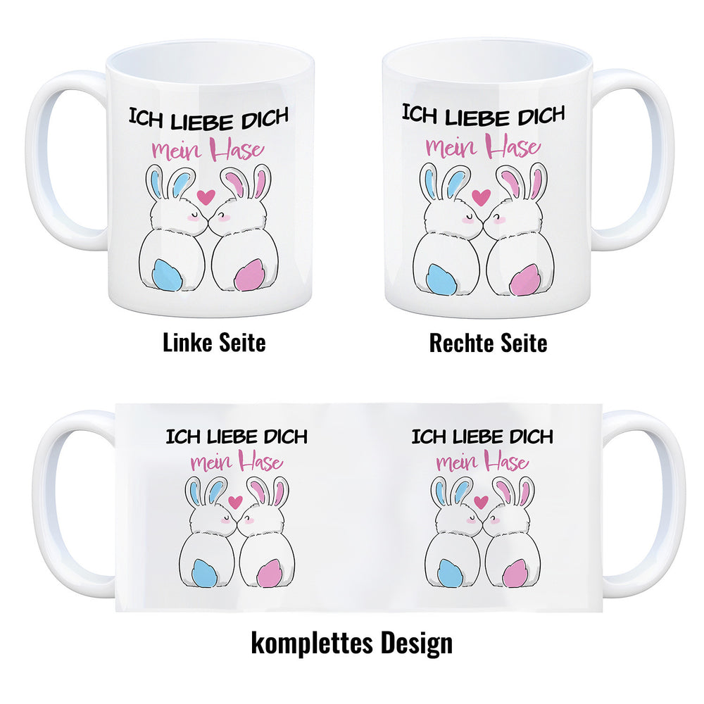 Ich liebe dich mein Hase Kaffeebecher mit küssendem Hasenpaar