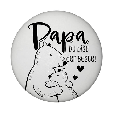 Papa Bär Geschenk Magnet rund rund mit Spruch Papa du bist der Beste