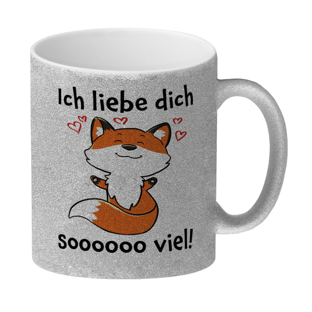 Dieser Kaffeebecher ist die perfekte Geschenkidee, um einer geliebten Person zu zeigen, wie viel sie dir bedeutet. Erhältlich in verschiedenen Varianten: Als weiße Standardtasse, mit farbigem Henkel und Innenseite, als edle Glastasse oder in der exklusiven Silberedition mit Glitzereffekt. Der süße Fuchs und der liebe Spruch sagen mehr als tausend Worte und machen diesen Becher zu etwas ganz Besonderem. Mit Sorgfalt in Handarbeit hergestellt in Deutschland wird er dich mit seiner Qualität überzeugen und deinen Küchenschrank verschönern. Überrasche deine Freundin, deinen Freund oder Familienmitglieder zum Geburtstag, Muttertag, Vatertag oder einem anderen Anlass mit dem Ich liebe dich soooooo viel Kaffeebecher und lass die Liebe sprechen!