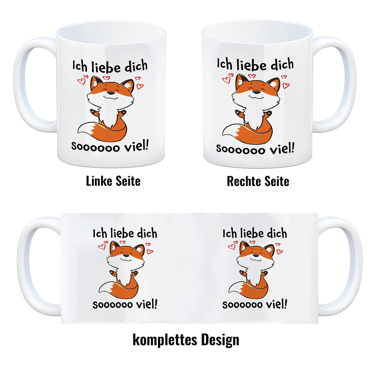 • 1x Ich liebe dich soooooo viel Kaffeebecher mit niedlichem Fuchs in der gewählten Ausführung