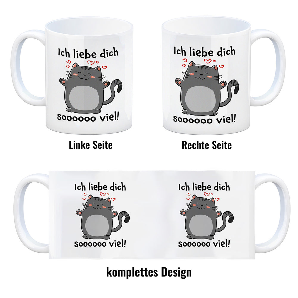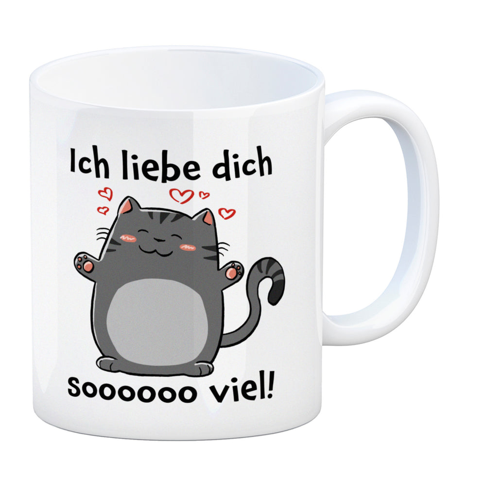 - 1x Ich liebe dich soooooo viel Kaffeebecher mit niedlicher Katze in der gewählten Ausführung