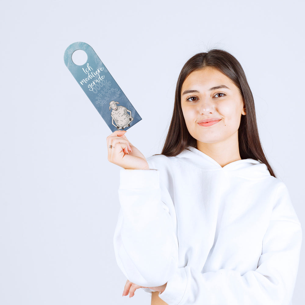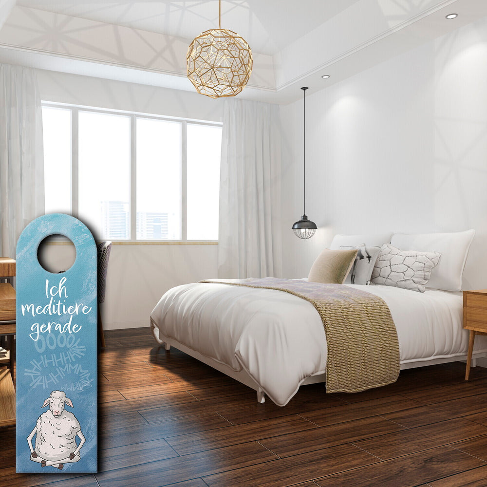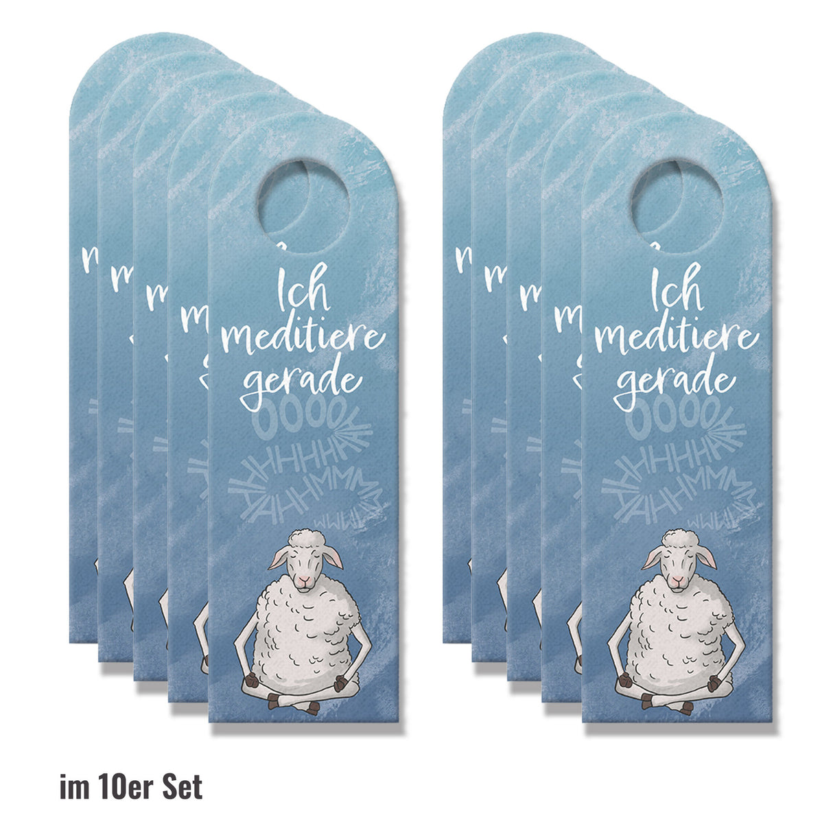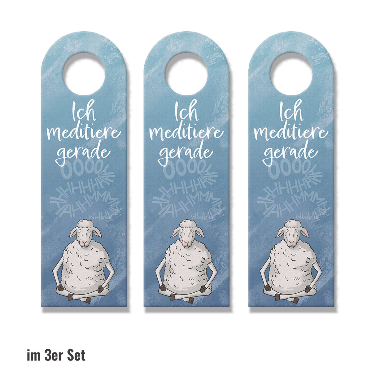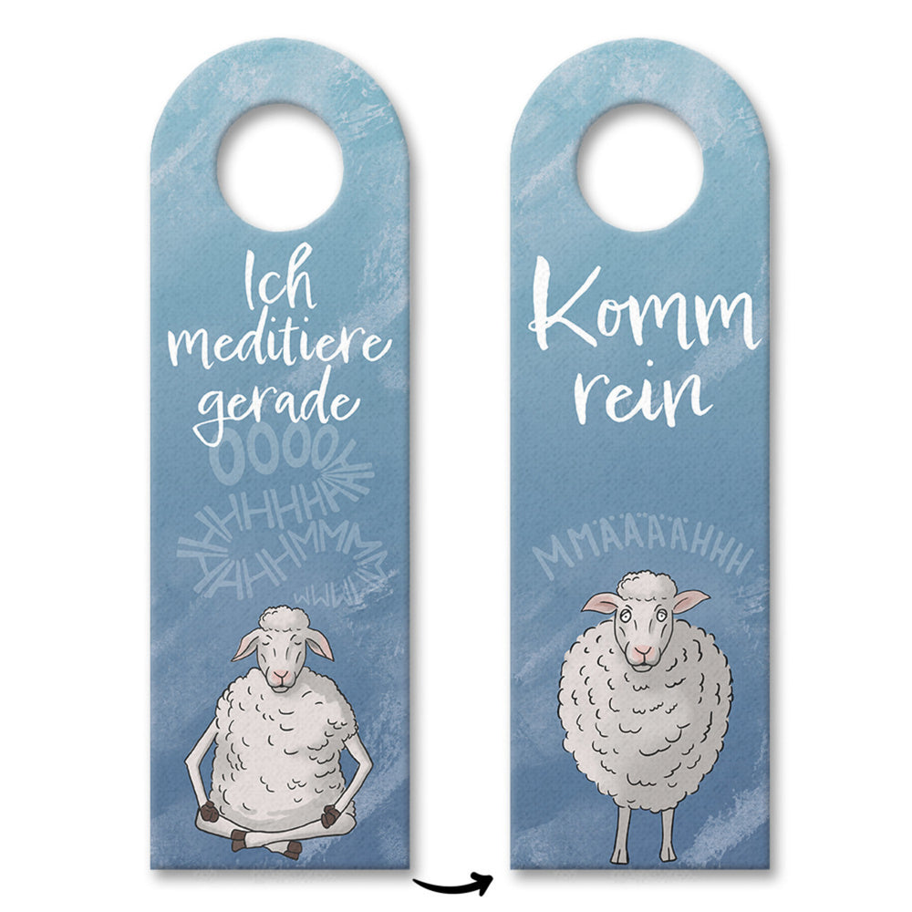 - 1x Ich meditiere gerade oder Komm rein Türhänger mit lustigem Schaf in der gewählten Setgröße