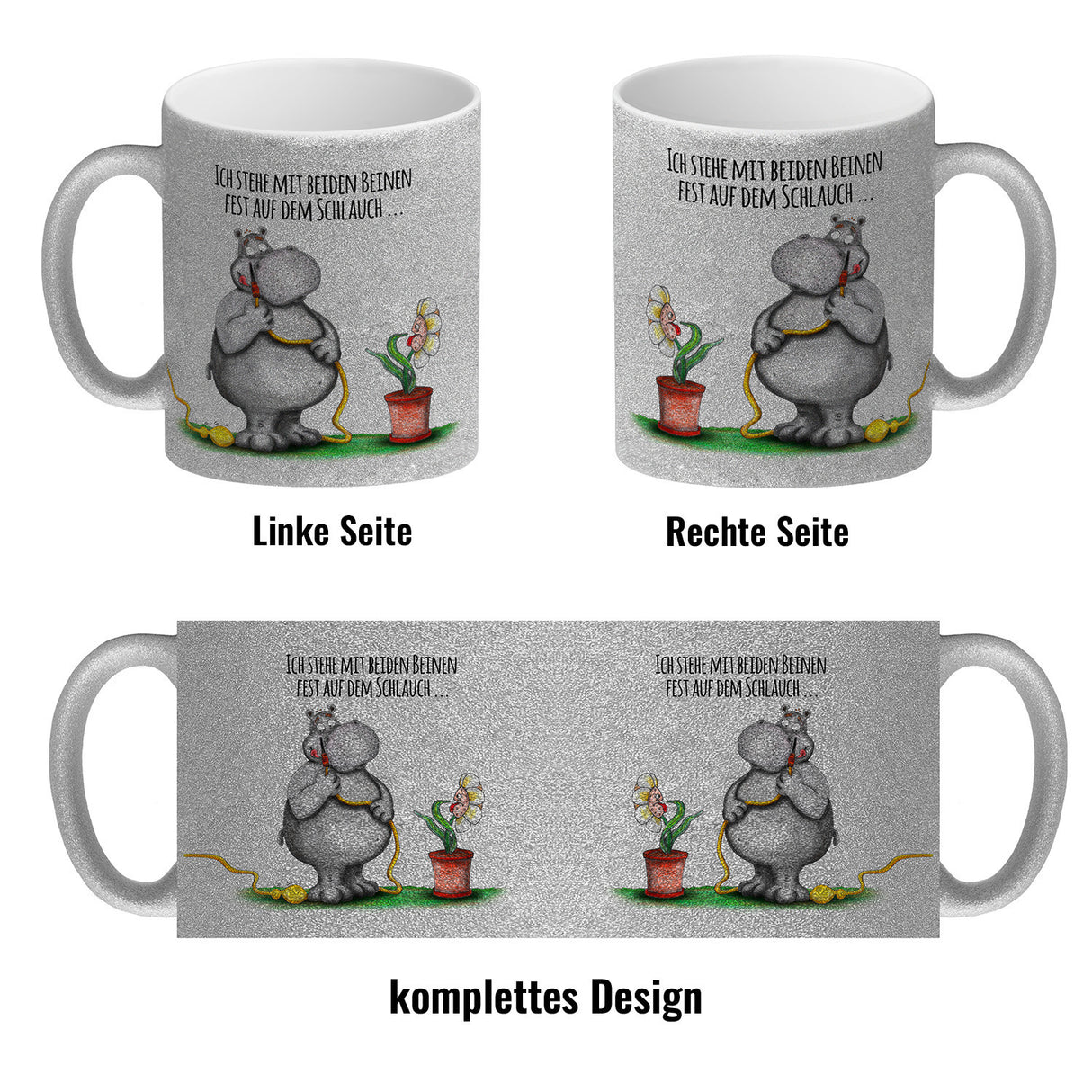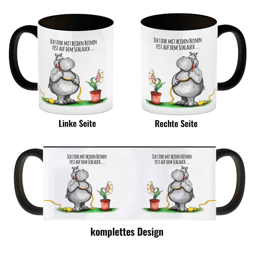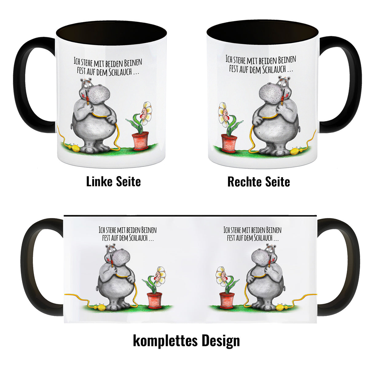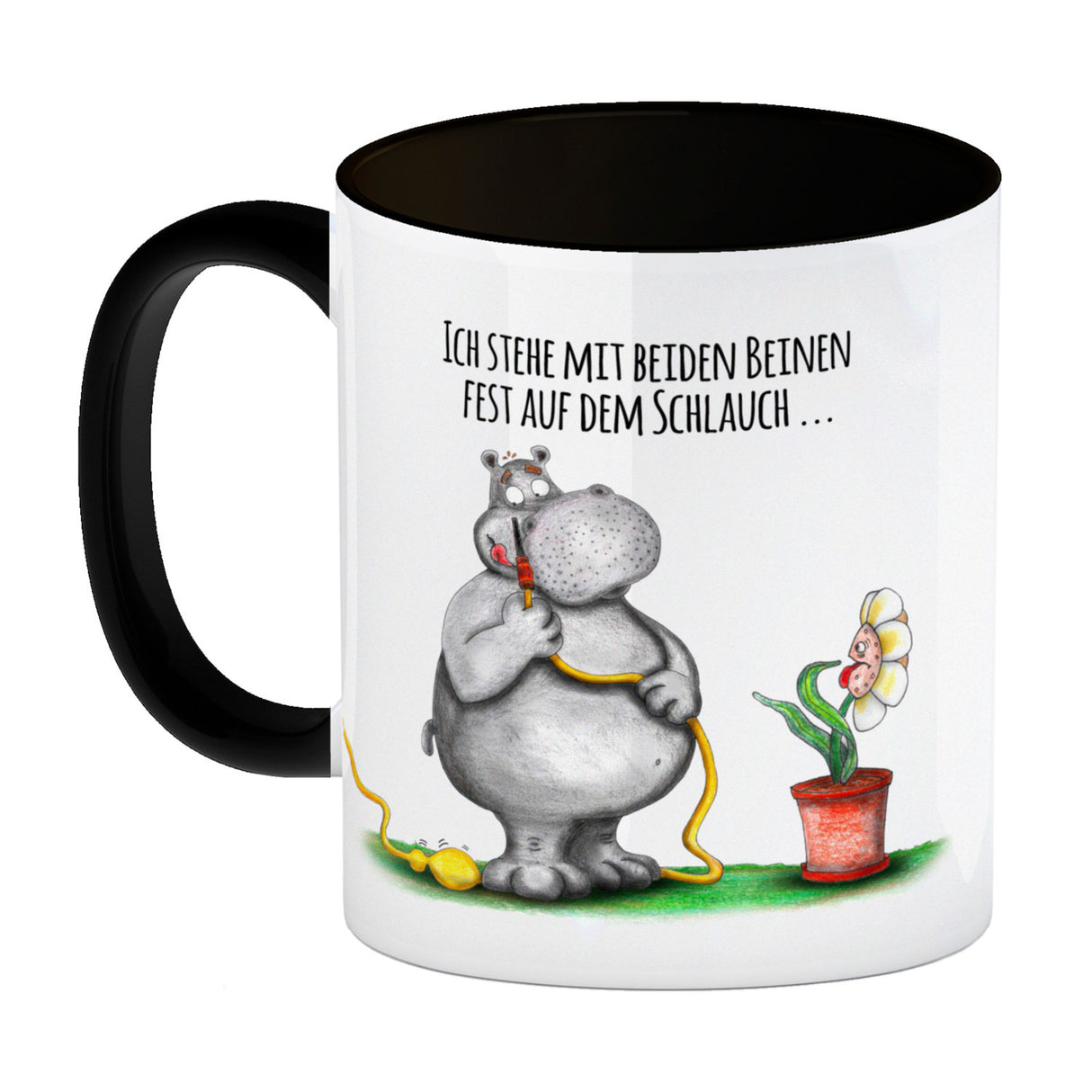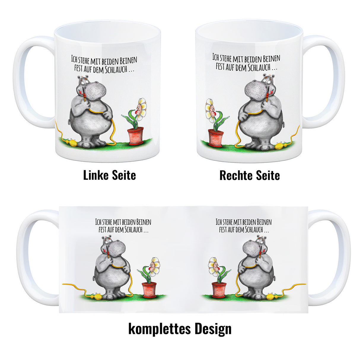 - 1x Ich stehe mit beiden Beinen fest auf dem Schlauch Nilpferd Kaffeebecher in der gewählten Ausführung