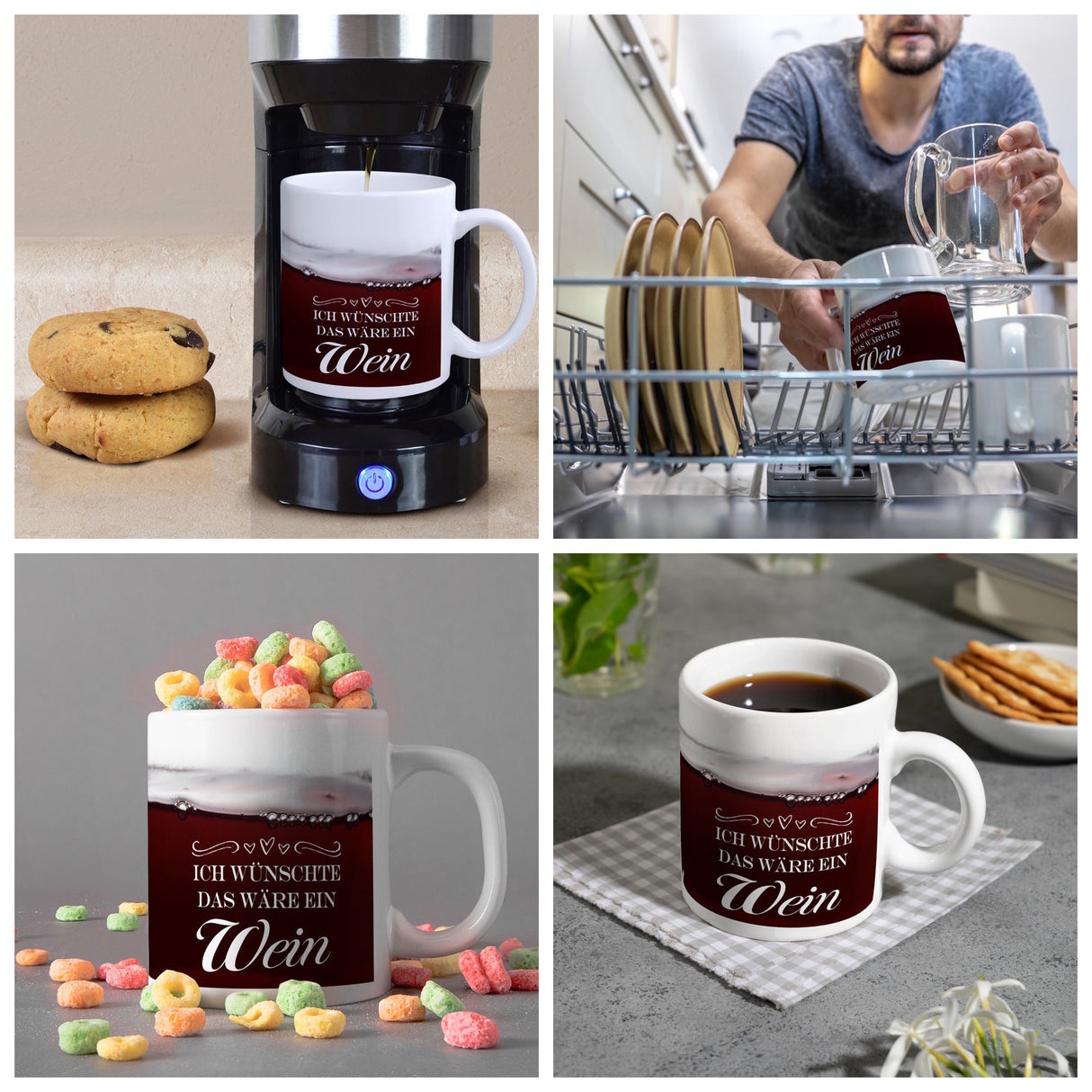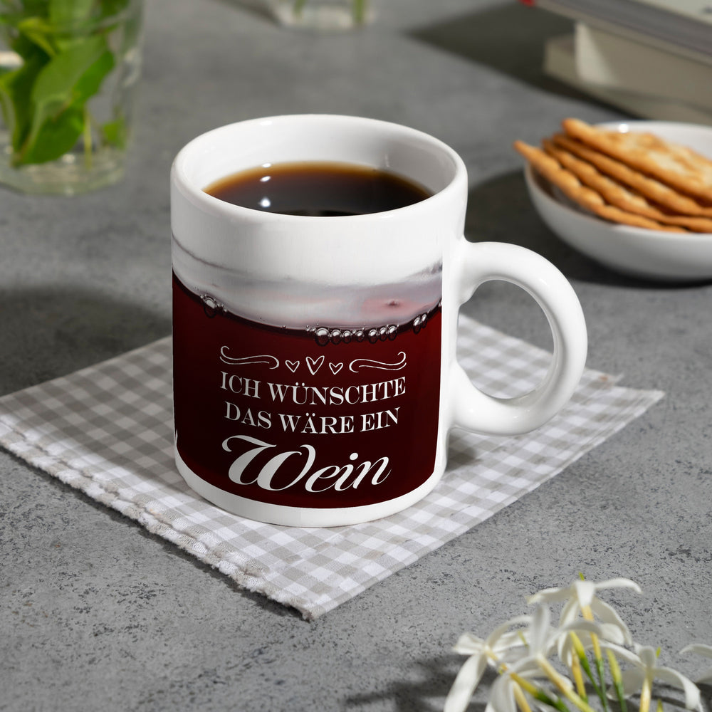 - 1x Ich wünschte das wäre ein Wein Kaffeebecher mit Weinmotiv in der gewählten Ausführung