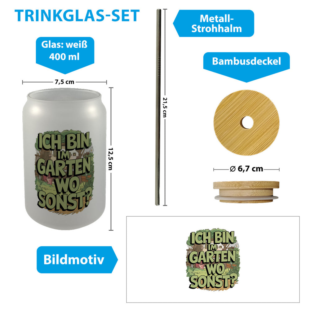 Hol dir jetzt das "Im Garten, wo sonst?" Trinkglas! Mit Liebe zum Detail gestaltet und auf hochwertigem Material gedruckt, garantiert es langanhaltenden Genuss. Warum warten? Dieses charmante Glas wird dein Outdoor-Erlebnis aufpeppen und darf in k Hinweise: Material: Glas, Bambus und Edelstahl / Volumen ca. 400 ml