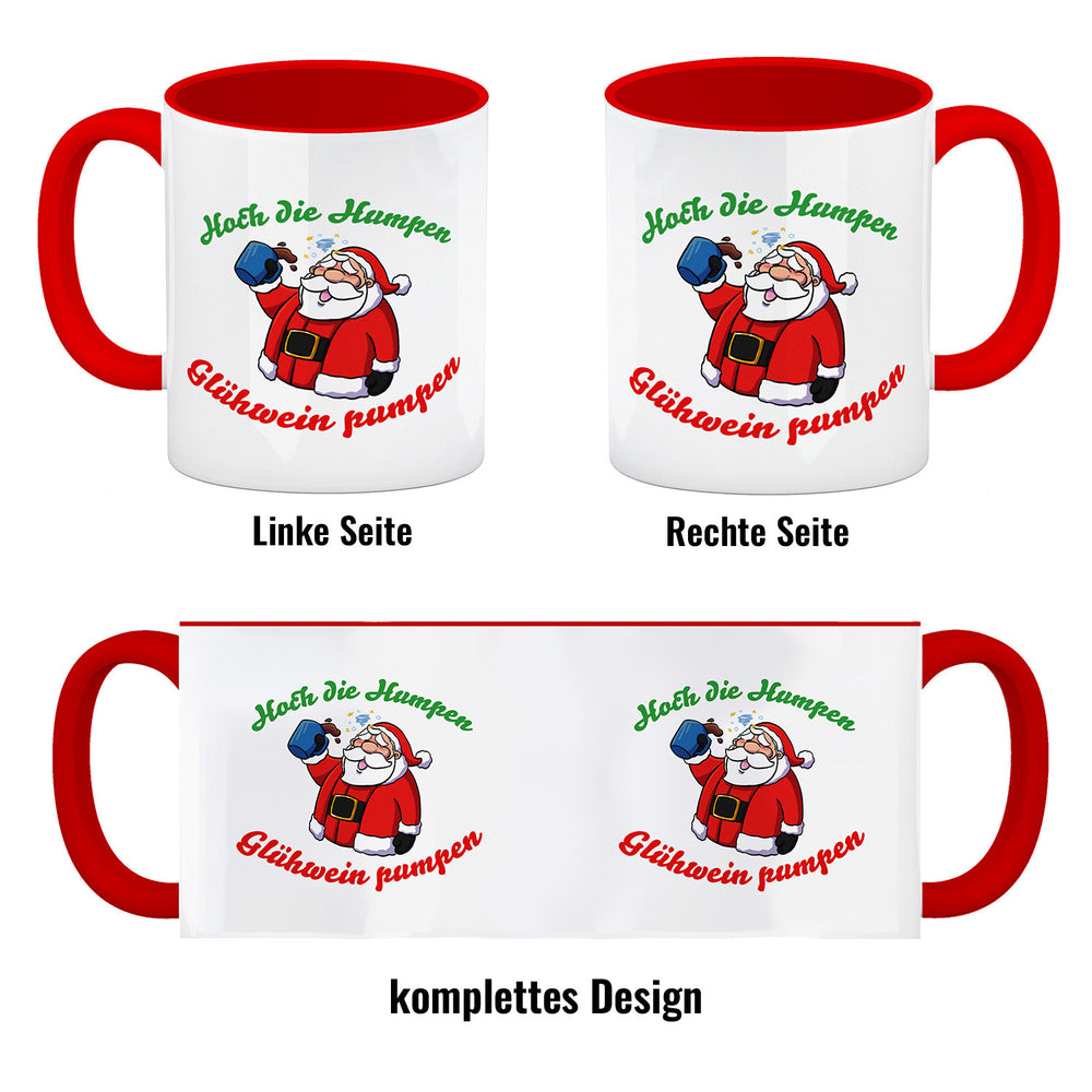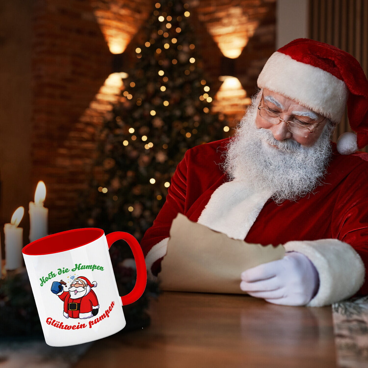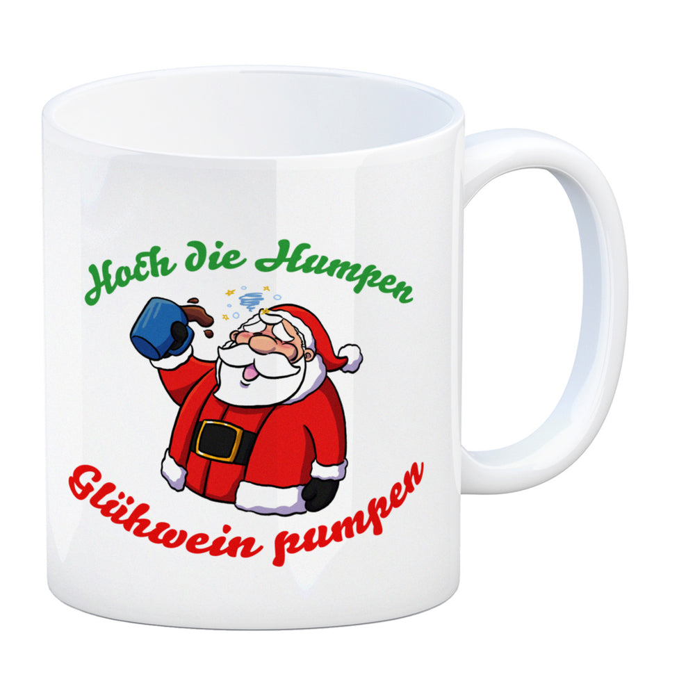 - 1x Kaffeebecher mit betrunkenem Weihnachtsmann - Hoch die Humpen, Glühwein pumpen in der gewählten Ausführung