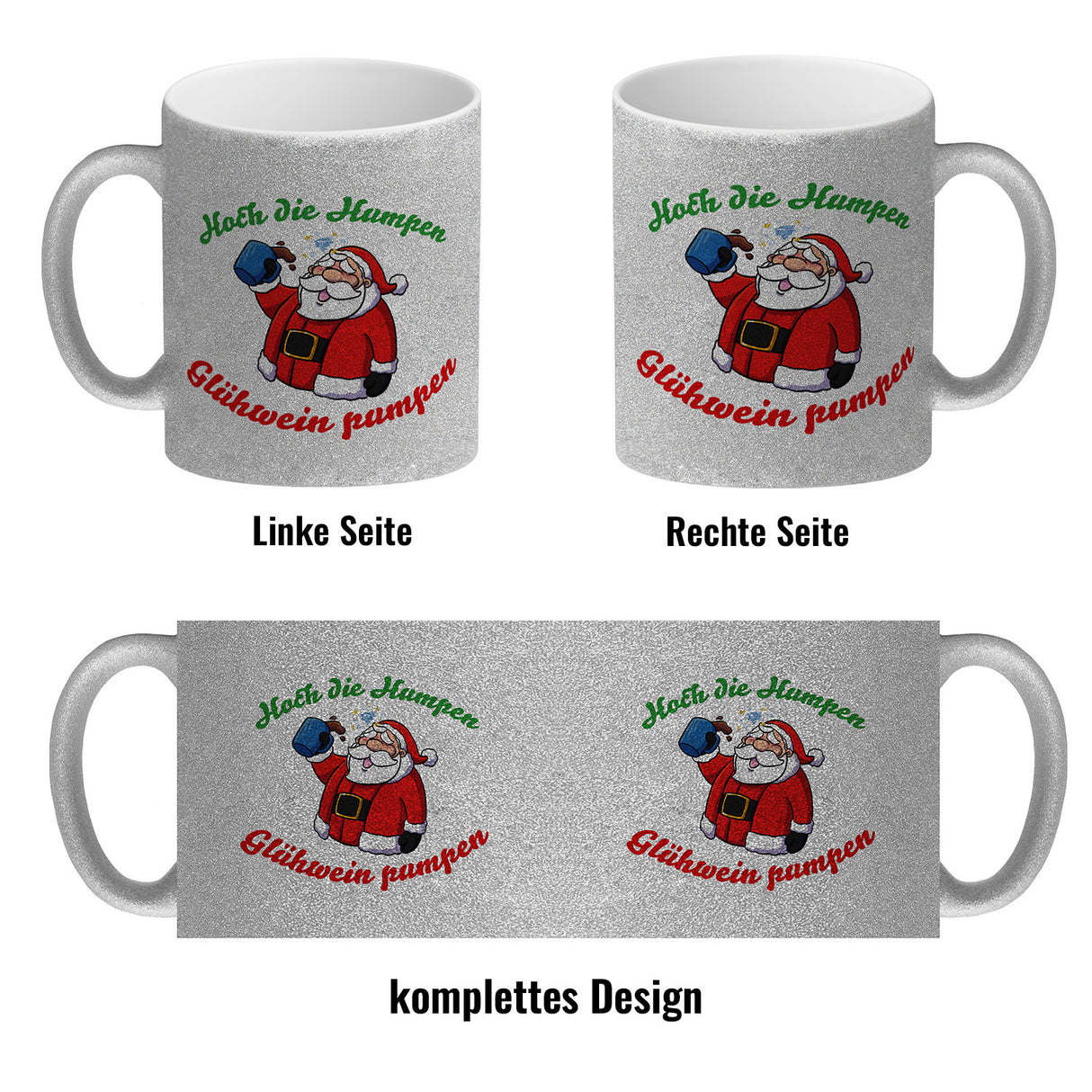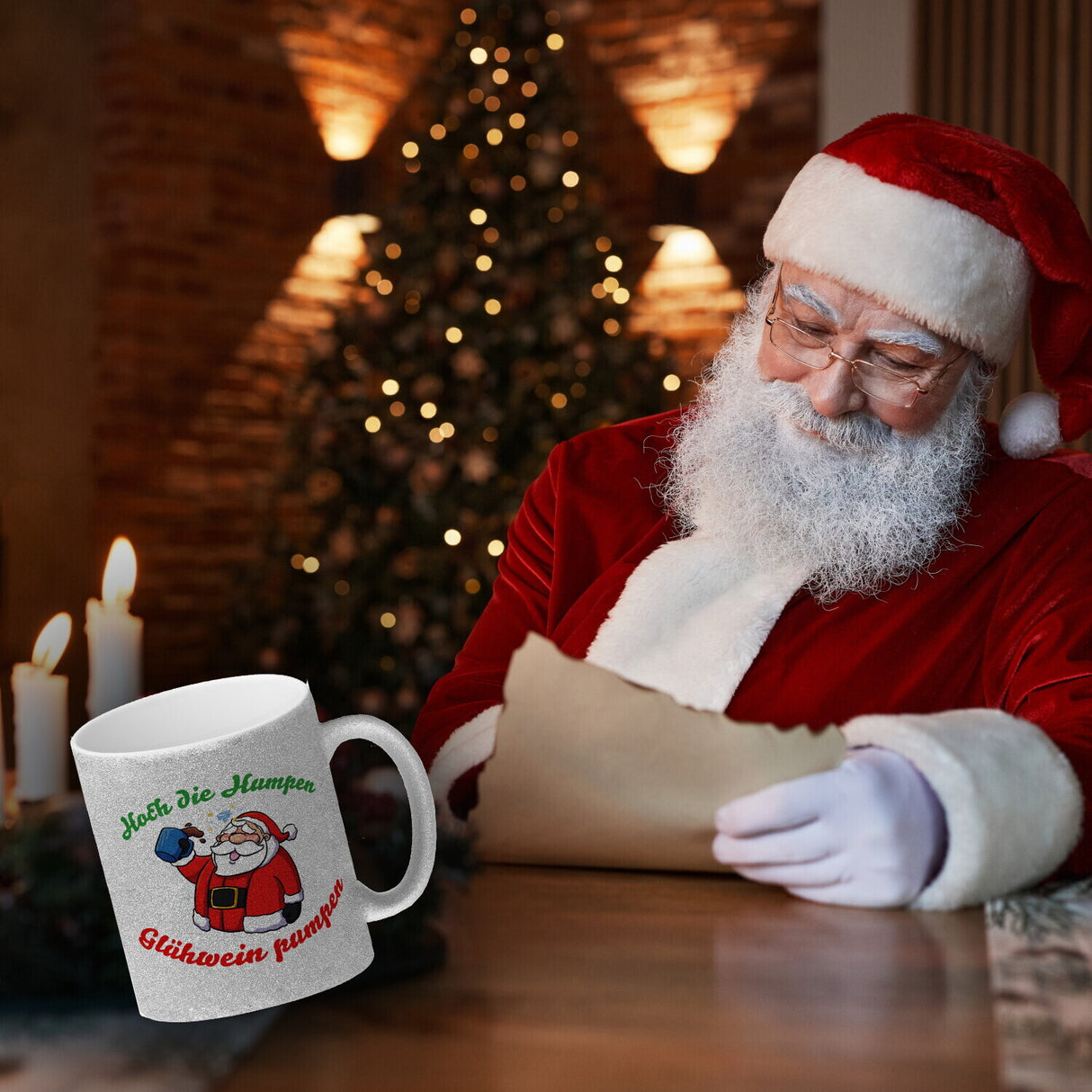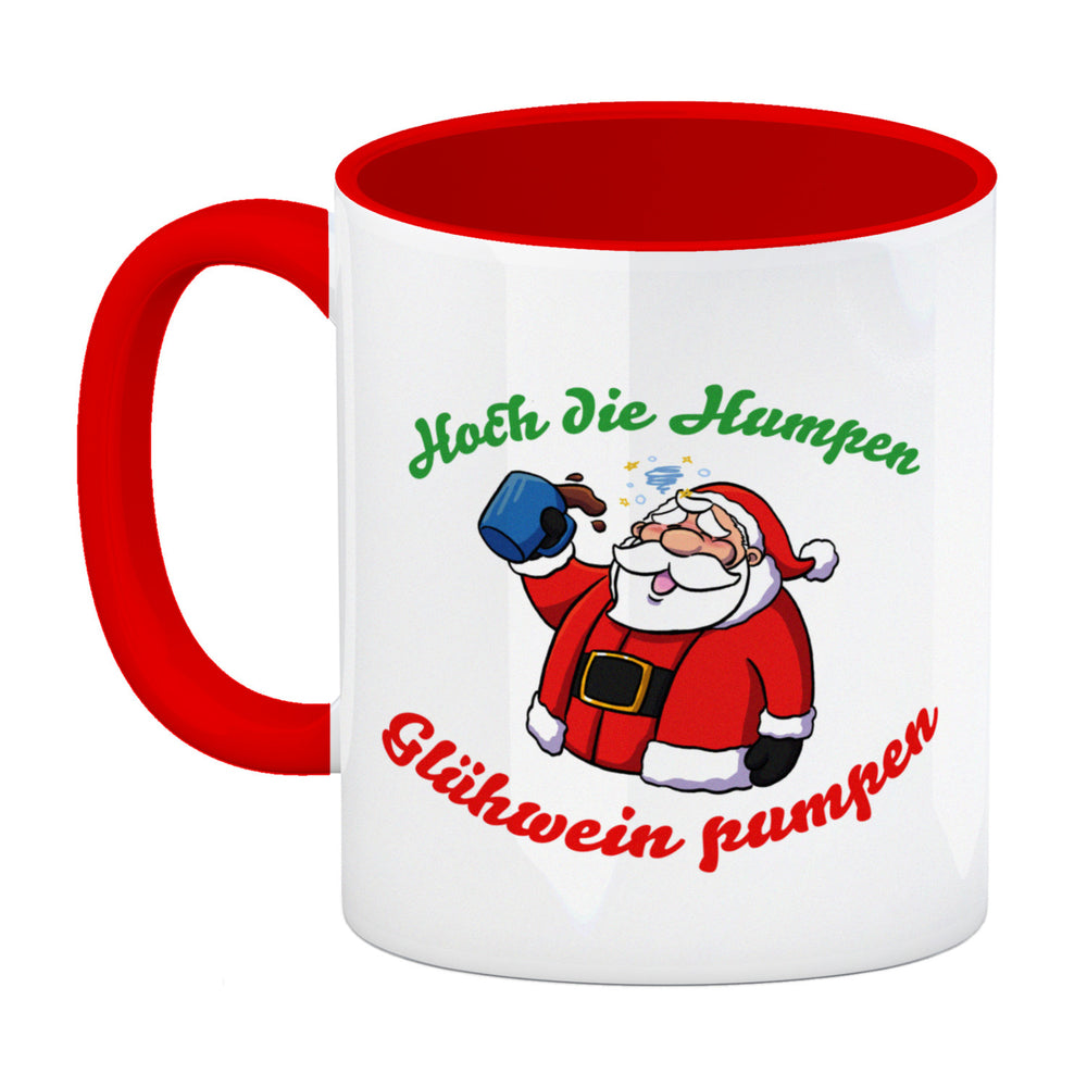 - 1x Kaffeebecher mit betrunkenem Weihnachtsmann - Hoch die Humpen, Glühwein pumpen in der gewählten Ausführung