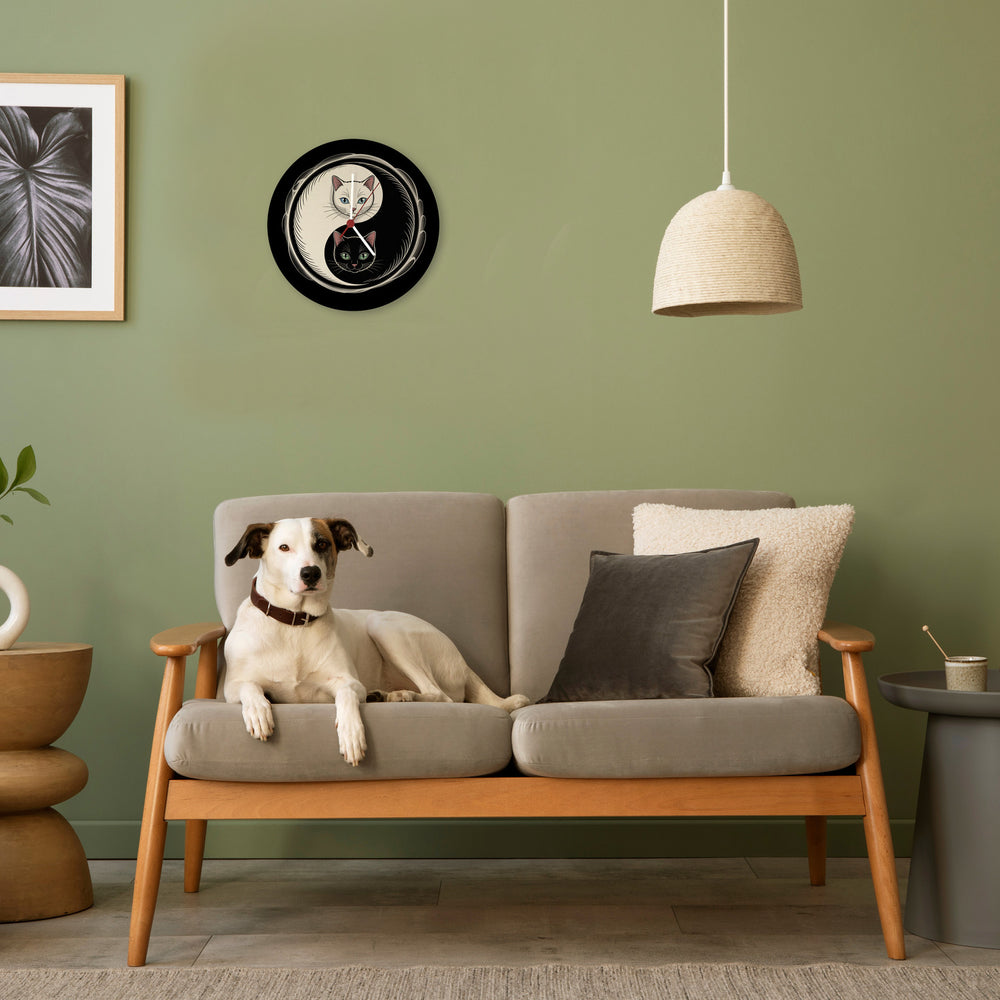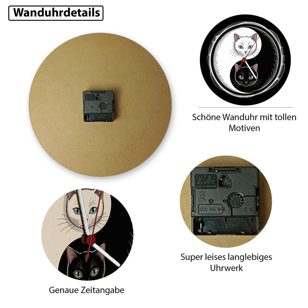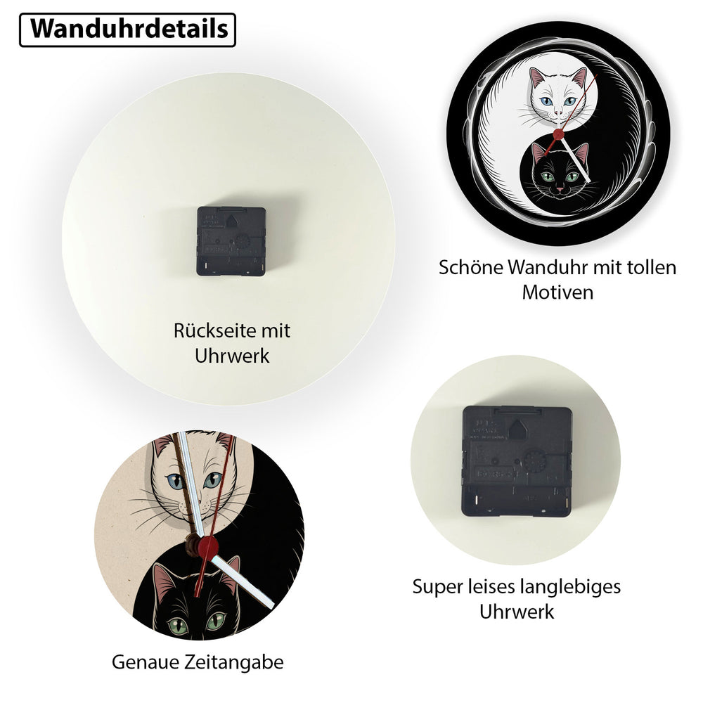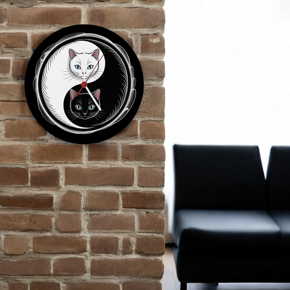 - Hol dir jetzt dieses kleine Kunstwerk! Die Katzen Yin und Yang Wanduhr ist mit viel Liebe zum Detail von Hand gestaltet und gedruckt, um höchste Qualität zu garantieren. Bringe Harmonie und stilvolle Eleganz an deine Wand und erlebe, wie Kunst und Funktion in einer Uhr verschmelzen.