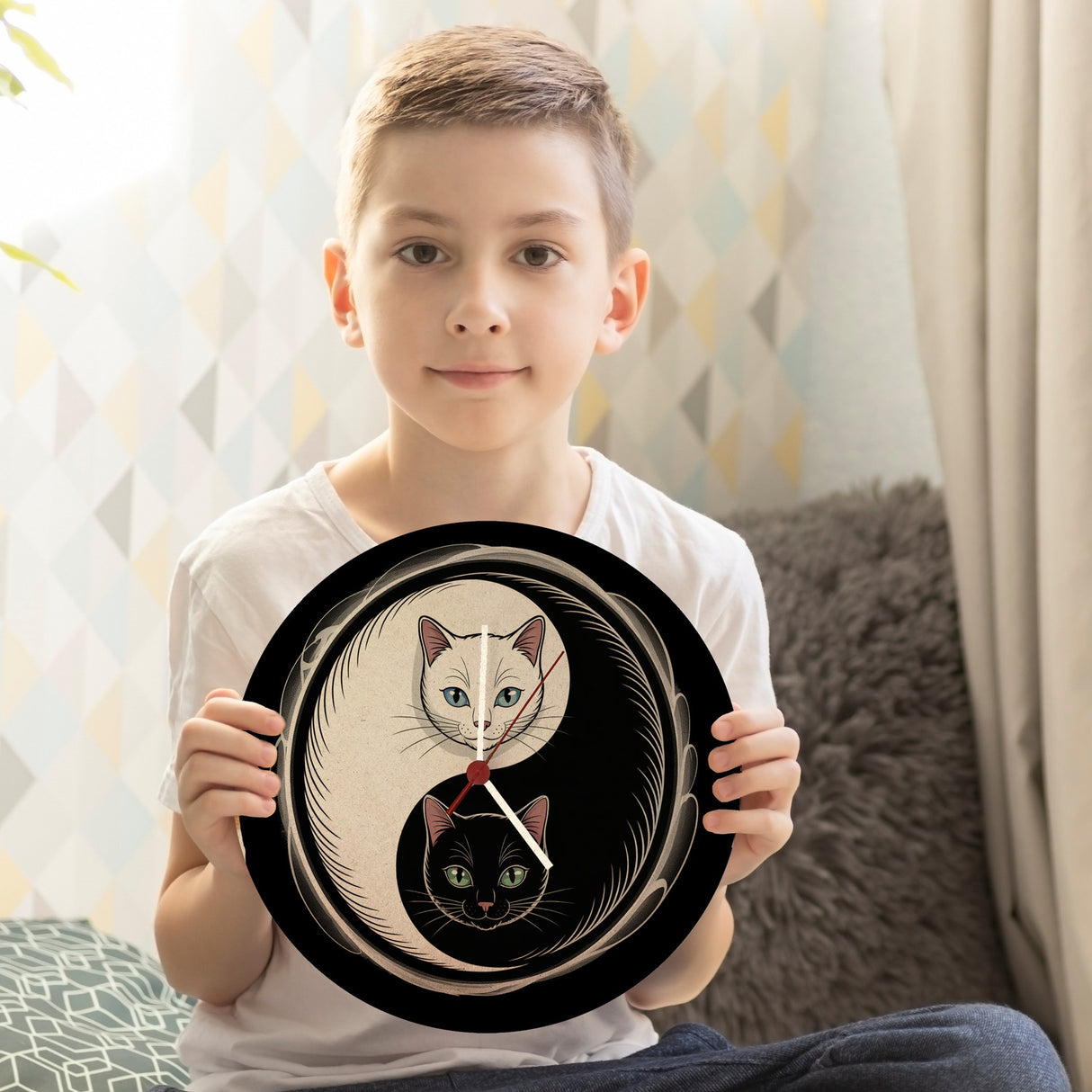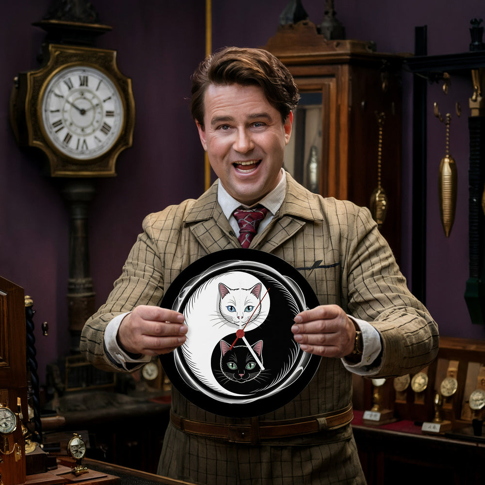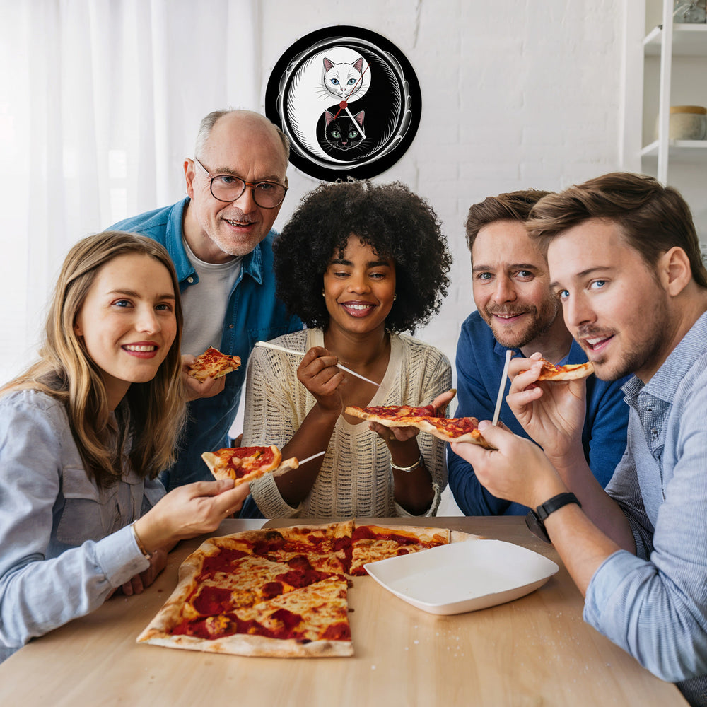 - Hol dir jetzt dieses kleine Kunstwerk! Die Katzen Yin und Yang Wanduhr ist mit viel Liebe zum Detail von Hand gestaltet und gedruckt, um höchste Qualität zu garantieren. Bringe Harmonie und stilvolle Eleganz an deine Wand und erlebe, wie Kunst und Funktion in einer Uhr verschmelzen.