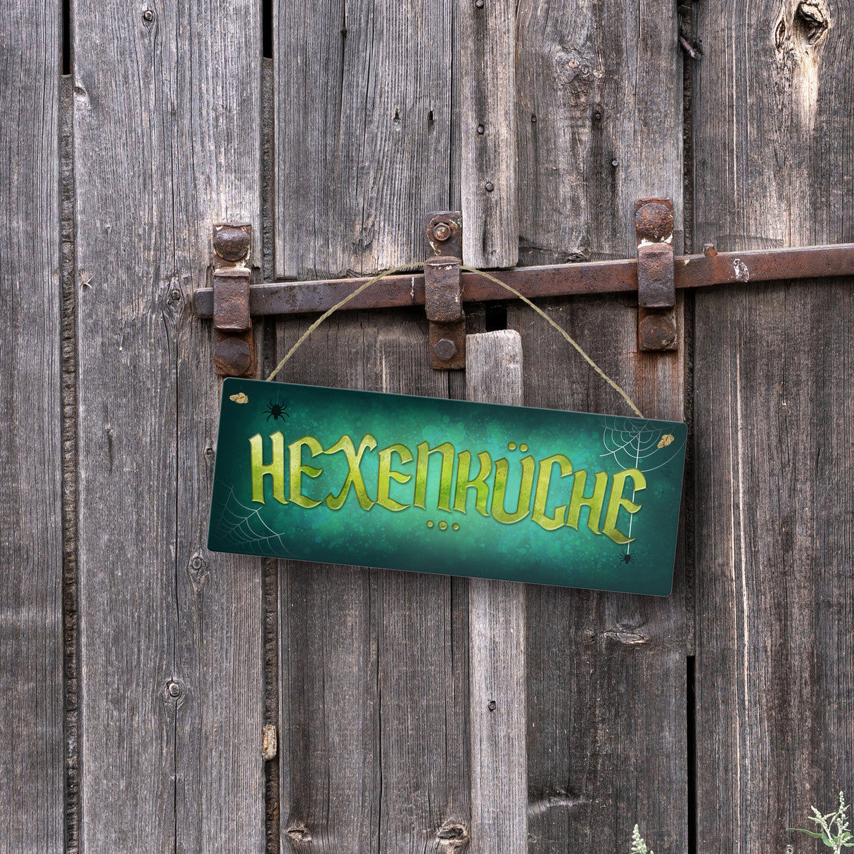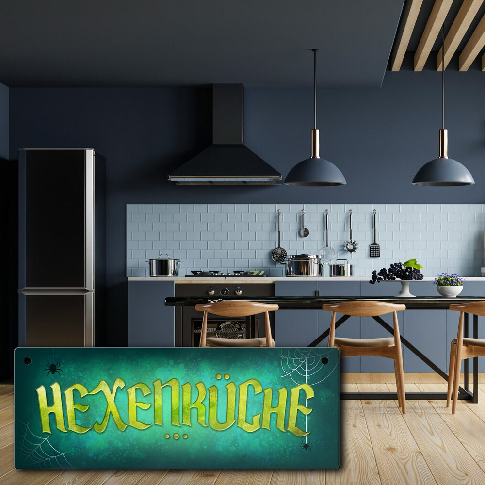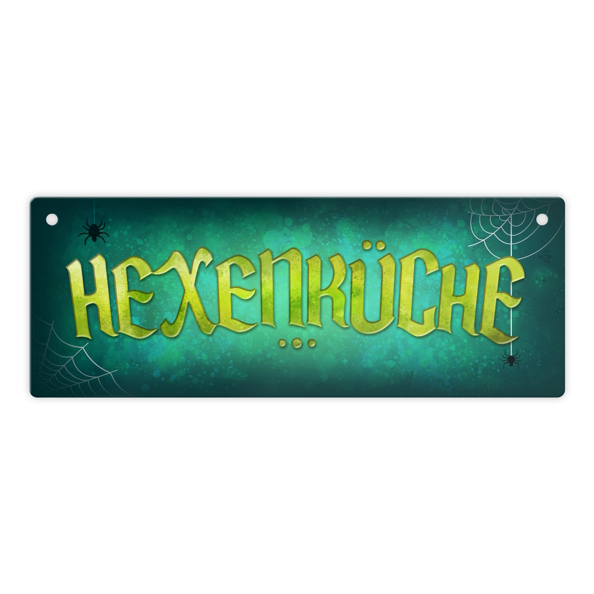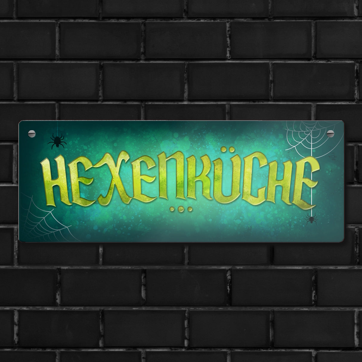 • 1x Küche Metallschild mit Spinne Motiv und Spruch: Hexenküche in der gewählten Größe