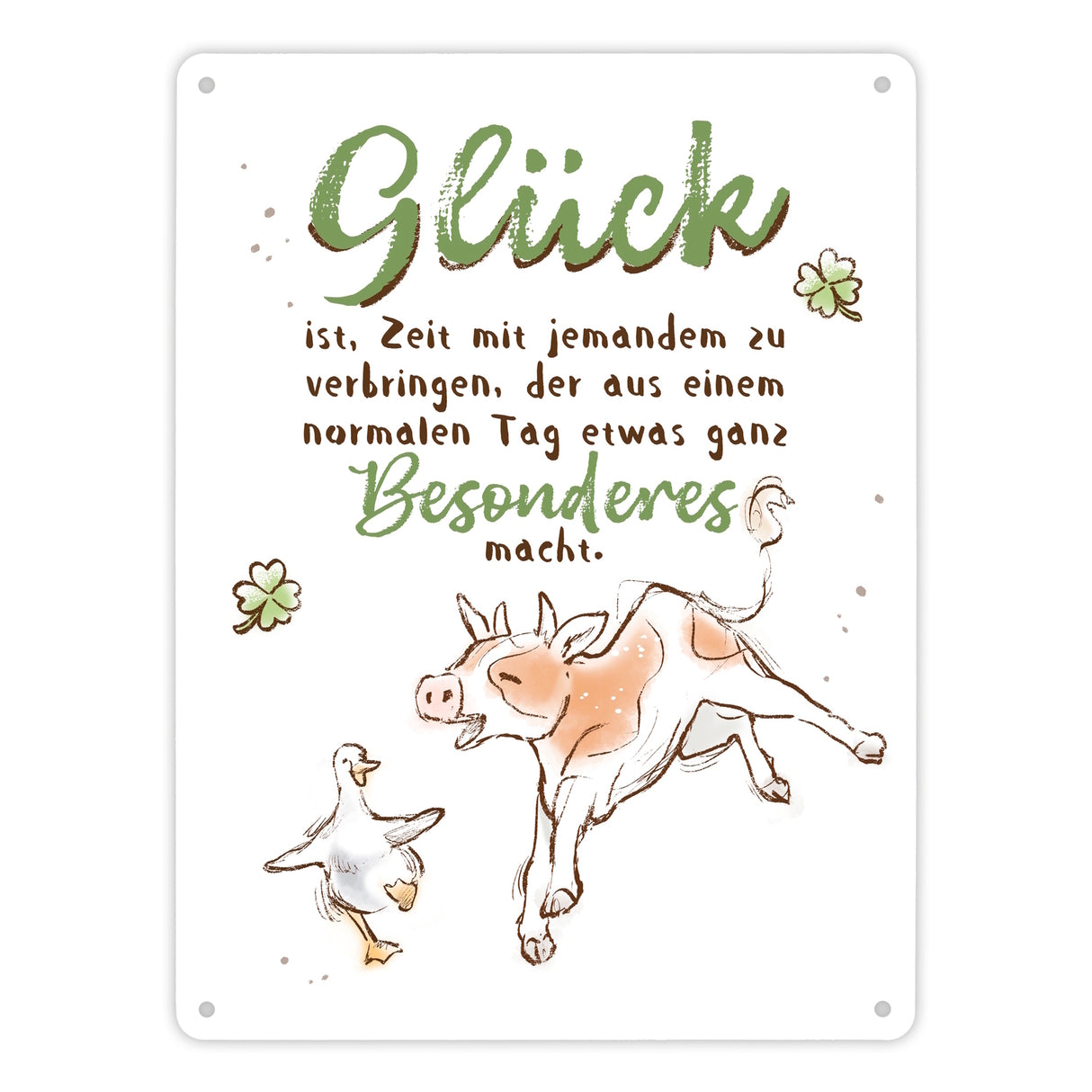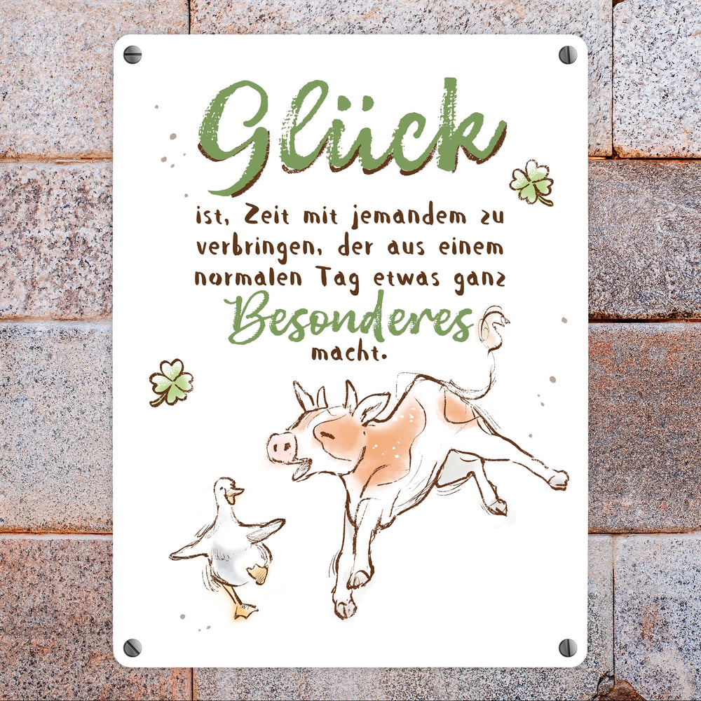Kuh und Gans Metallschild in 15x20 cm mit Spruch Glück ist besondere Zeit mit jemandem