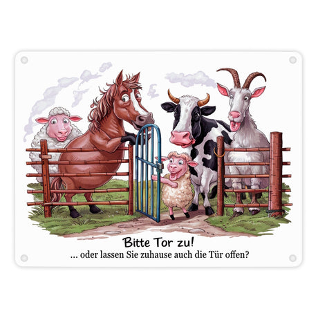 Bitte Tor zu Bauernhofszene Metallschild in 15x20 cm