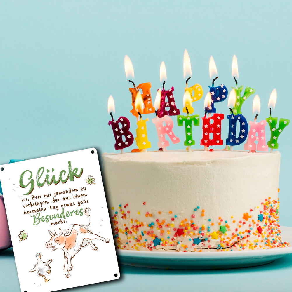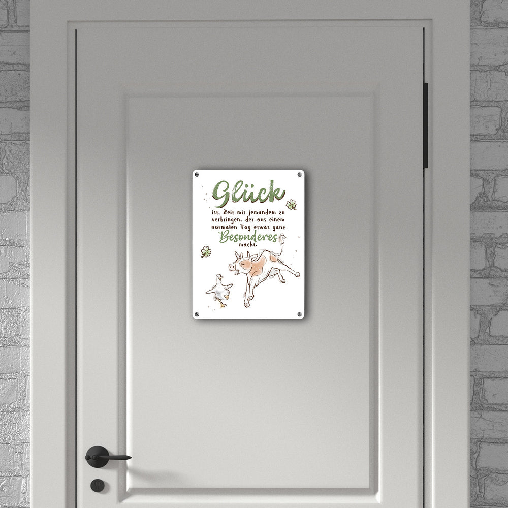 - 1x Kuh und Gans Metallschild in 15x20 cm mit Spruch Glück ist besondere Zeit mit jemandem in der gewählten Größe