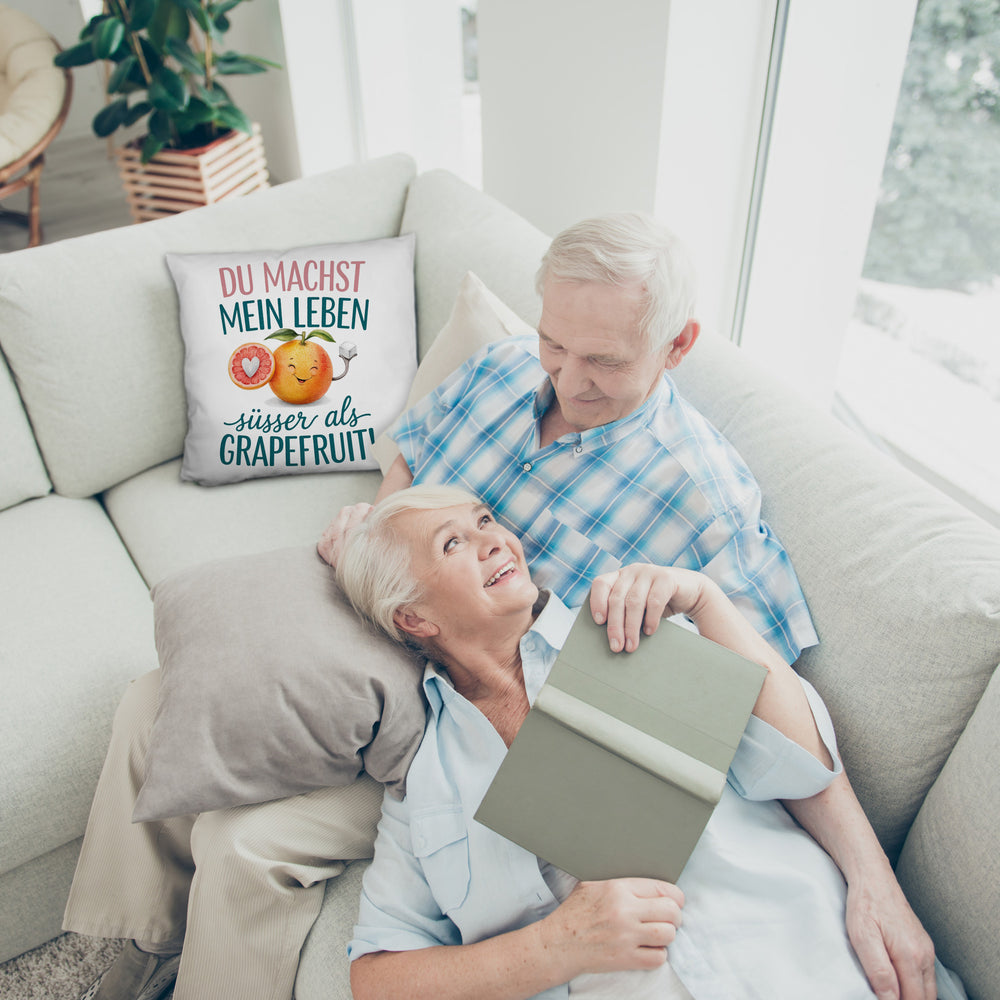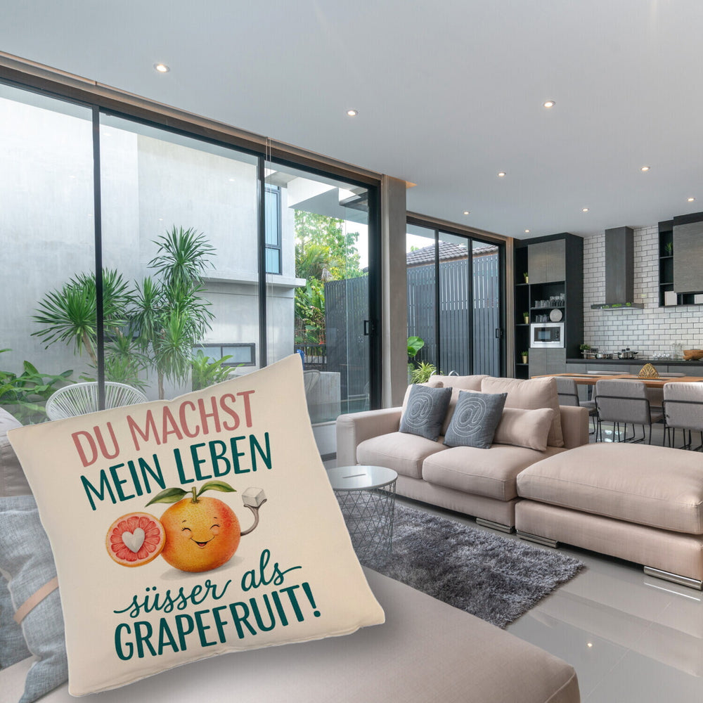 - 1x Lächelnde Grapefruit Du machst mein Leben süßer Kissen in der gewählten Ausführung