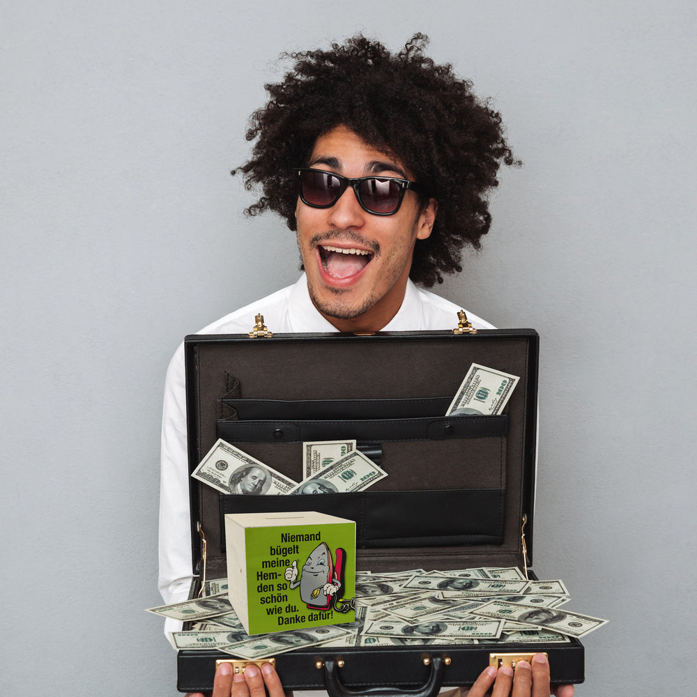 - Gönnen Sie sich oder Ihren Lieben ein Stück Humor für den Alltag! Diese Spardose überzeugt durch erstklassige Qualität und ist mit viel Liebe zum Detail designt. Greifen Sie zu und sorgen Sie für ein Lächeln bei jedem Bügelvorgang! Sparen war noch nie so witzig und charmant!
