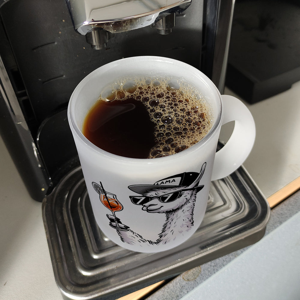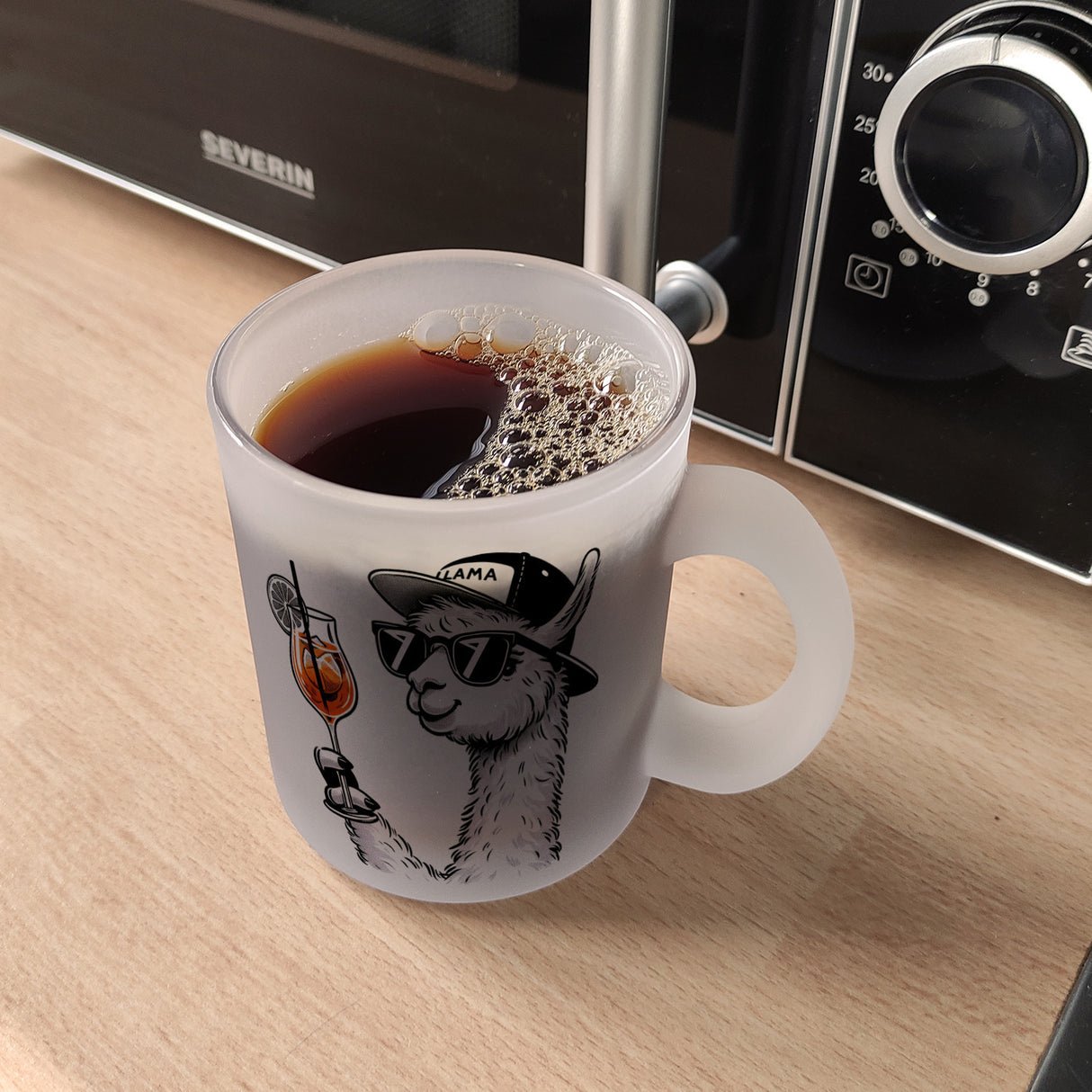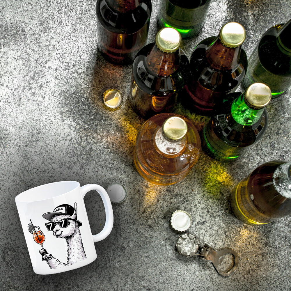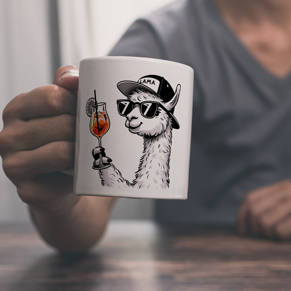 - Startet euren Morgen mit einem Gähnen und einem Grinsen! Dieser Kaffeebecher zeigt ein Lama in Urlaubsstimmung, komplett mit Schildmütze und Sonnenbrille – bereit, mit Aperol Spritz anzustoßen. Lasst dieses heitere Kamelid euer morgendlicher Trinkkumpane sein!