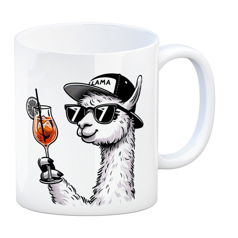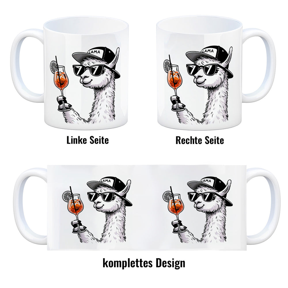 - 1x Lama Tasse Alpaka mit Aperol Spritz Kaffeebecher in der gewählten Ausführung