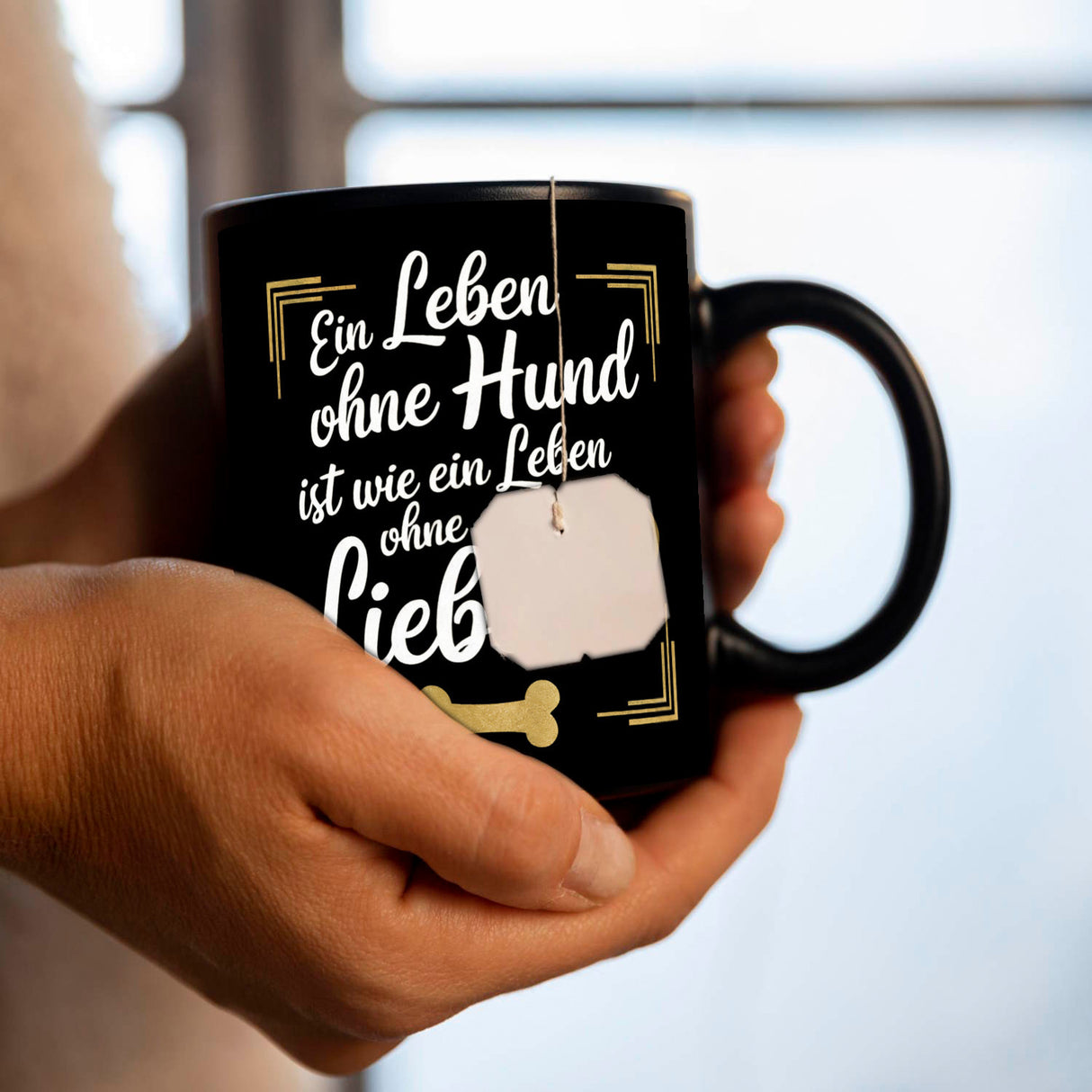 Ein Leben ohne Hunde ist zwar möglich, aber wer will das schon? Für alle, die ihren Kaffee genau so sehr lieben wie ihren bellenden besten Freund, gibt es jetzt den perfekten Begleiter: Der Leben ohne Hund ist wie Leben ohne Liebe Kaffeebecher. In glänzendem Schwarz mit einem luxuriösen goldenen Schriftzug, verbreitet er nicht nur Eleganz, sondern auch pure Hundeliebe. Jedes Herz und Pfotenabdruck ist ein Zeugnis Ihrer tiefen Verbundenheit zu Ihrem Vierbeiner.Der Becher ist aus hochwertiger Keramik gefertigt, bietet 300 ml Platz für Ihren Lieblingskaffee und ist natürlich spülmaschinenfest, für mühelose Pflege zwischen den Spaziergängen mit ihrem Fellfreund. Sein stilvolles Design und die persönlichen Details machen ihn zum idealen Geschenk für jeden Hundeliebhaber, sei es zu Geburtstagen, Weihnachten oder einfach als kleine Aufmerksamkeit.Lassen Sie Ihren Tag mit einem Lächeln beginnen, indem Sie einen Schluck nehmen und an die treue Begleitung denken, die Ihr Hund Ihnen bietet. Ob zu Hause, im Büro oder unterwegs – dieser Becher ist ein treuer Alltagsbegleiter und spricht für sich: Ein Leben ohne Hund wäre einfach nur halb so schön. Bringen Sie ein Stückchen Hundeherz in Ihren Alltag!