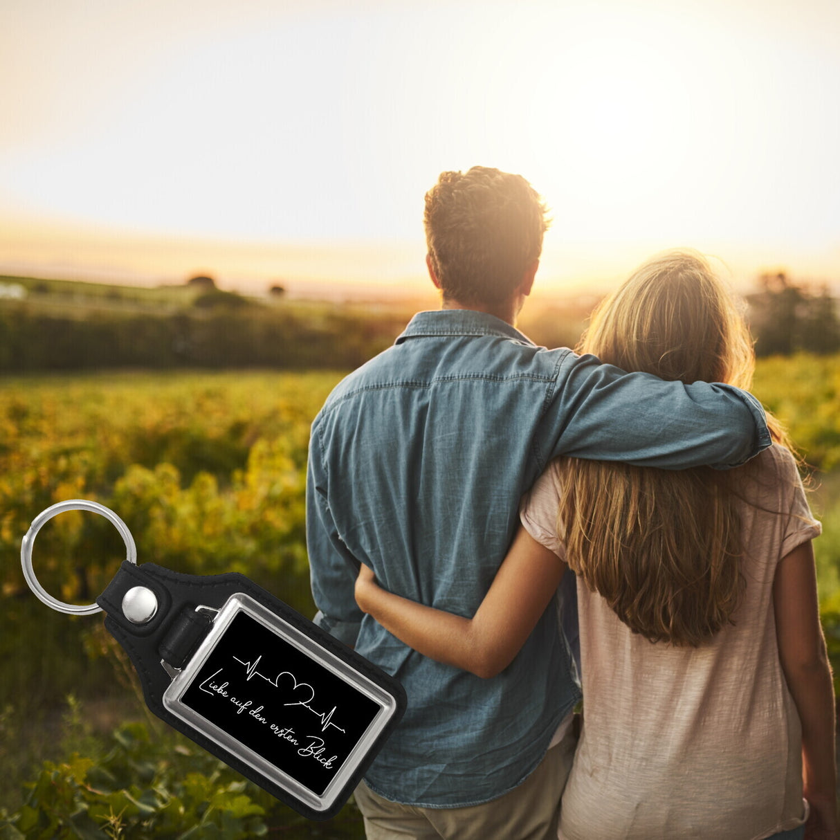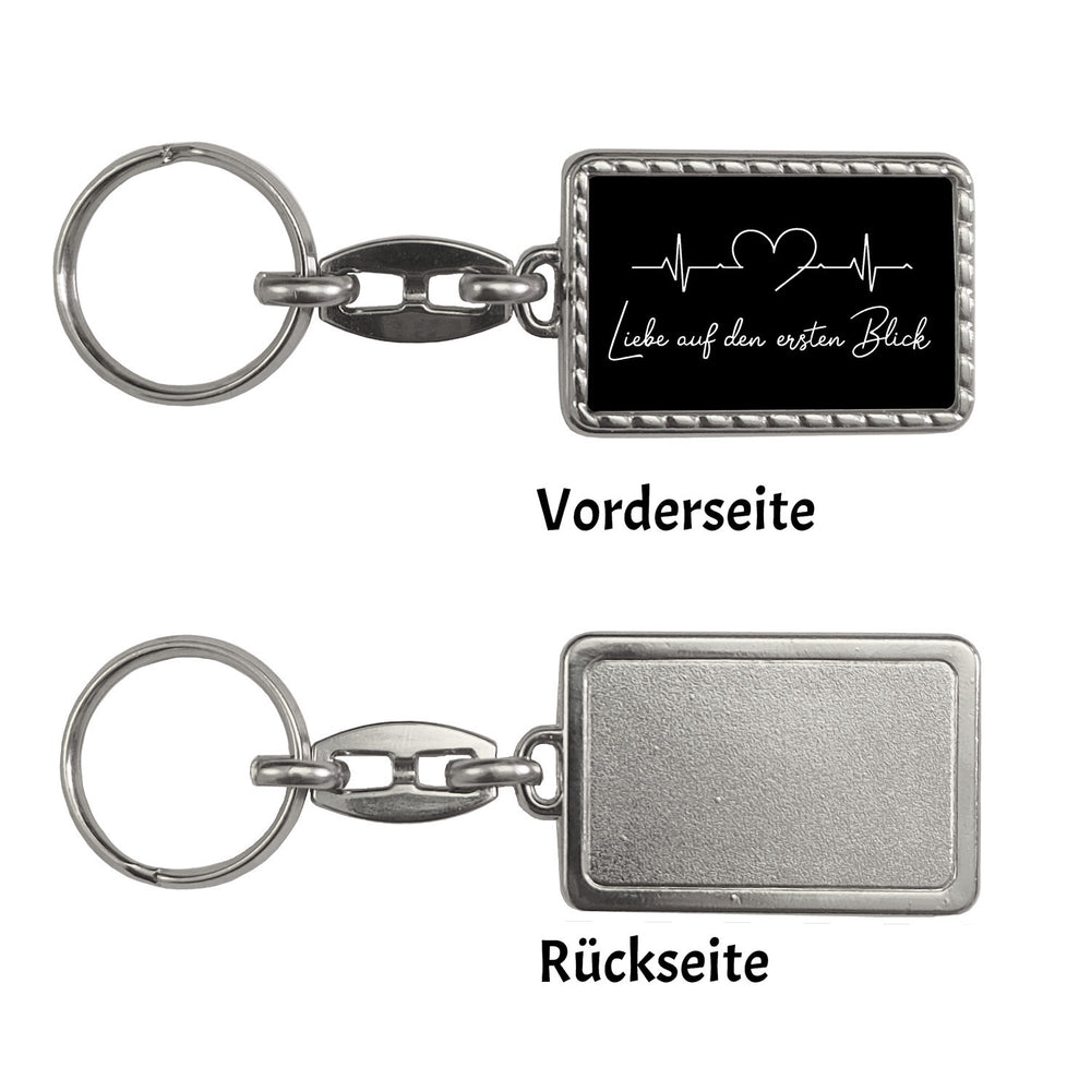 - Der EKG Herzlinie Liebe auf den ersten Blick Schlüsselanhänger begeistert mit einem schlichten, aber ausdrucksstarken Design. Ein schwarzer Hintergrund hebt die weiße, herzförmige EKG-Linie hervor, die von dem romantischen Spruch "Liebe auf den ersten Blick" begleitet wird. Ein perfektes Accessoire für Liebhaber minimalistischer Ästhetik.