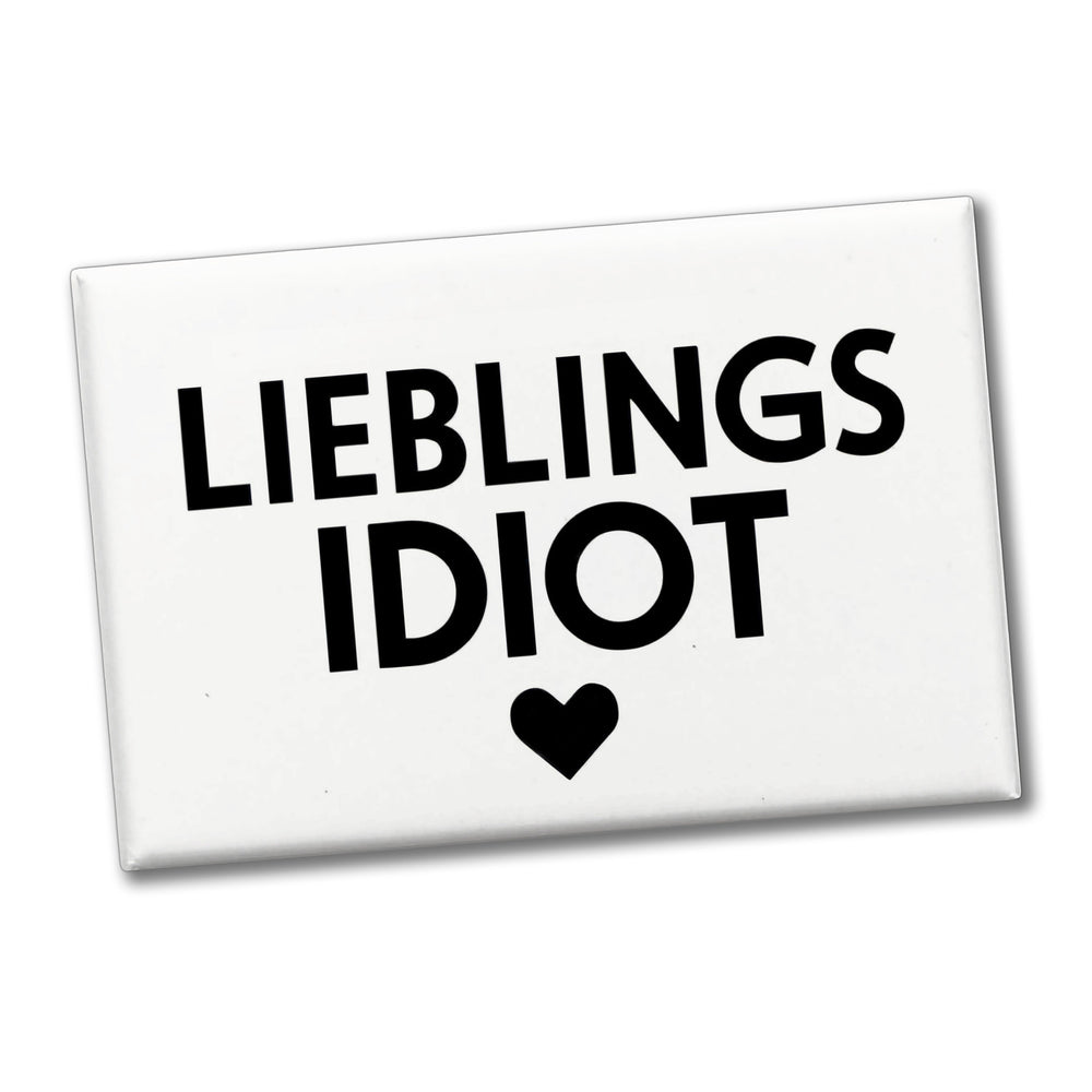 Dieser rechteckige Magnet präsentiert eine humorvolle und herzliche Botschaft in fetten, schwarzen Buchstaben auf einem schlichten weißen Hintergrund: "LIEBLINGS IDIOT". Ein charmantes Herzsymbol darunter verstärkt die liebevolle Botschaft. Ideal Hinweise: Größe: ca. 8x5,5 cm