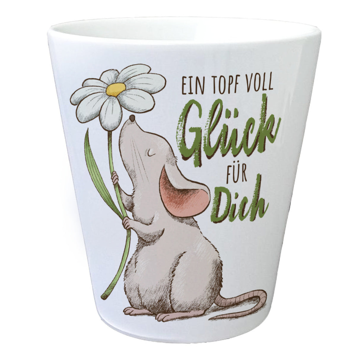 Maus Blumentopf mit Spruch Ein Topf voll Glück für dich