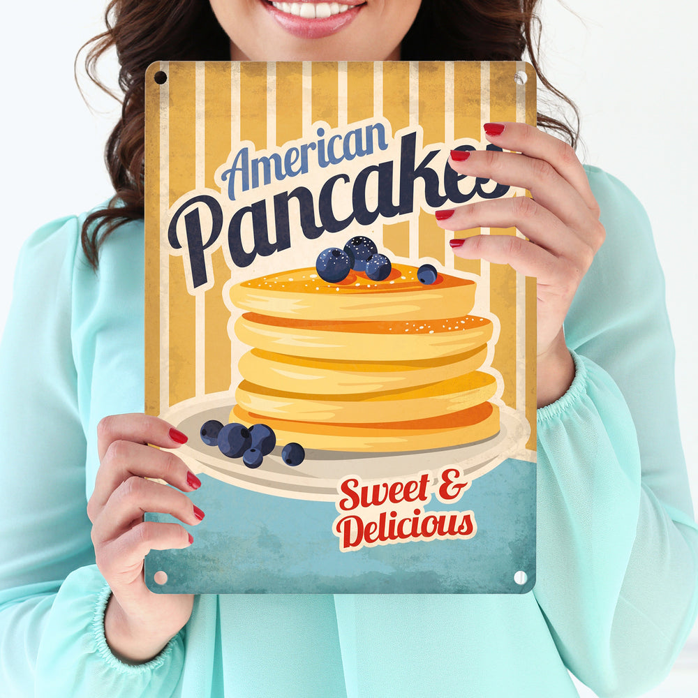 Metallschild mit American Diner Classics - Pancakes Motiv