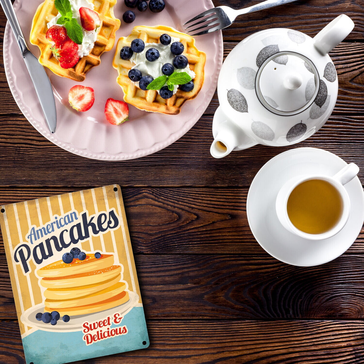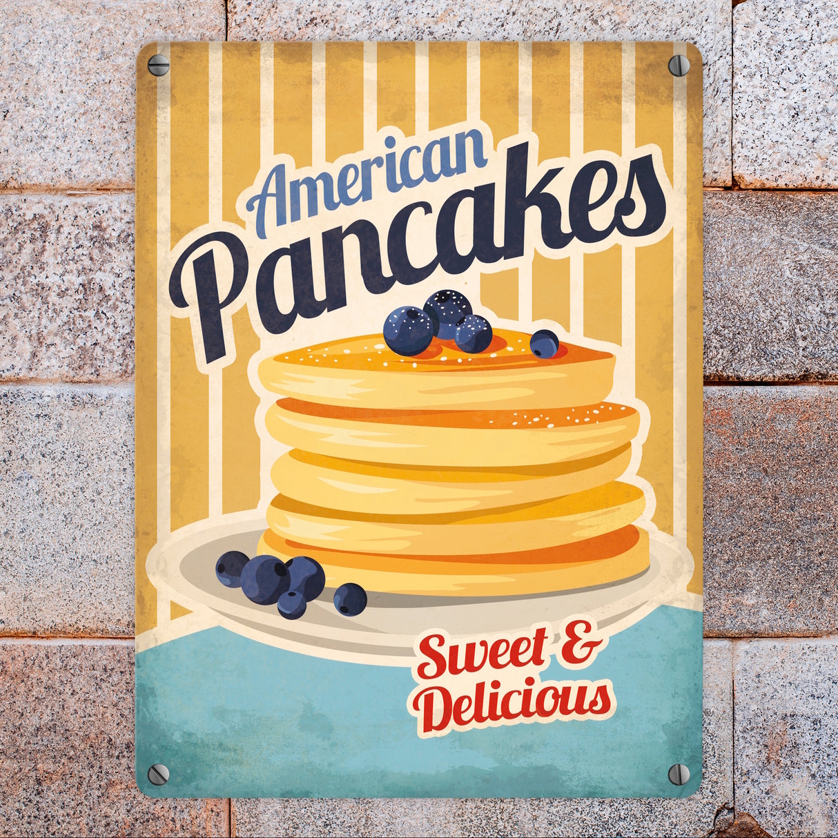 - 1x Metallschild mit American Diner Classics - Pancakes Motiv in der gewählten Größe