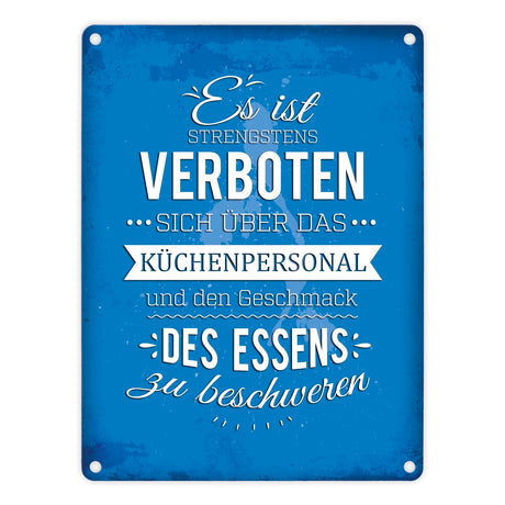 Metallschild mit Spruch: Kritik am Küchenpersonal ist verboten
