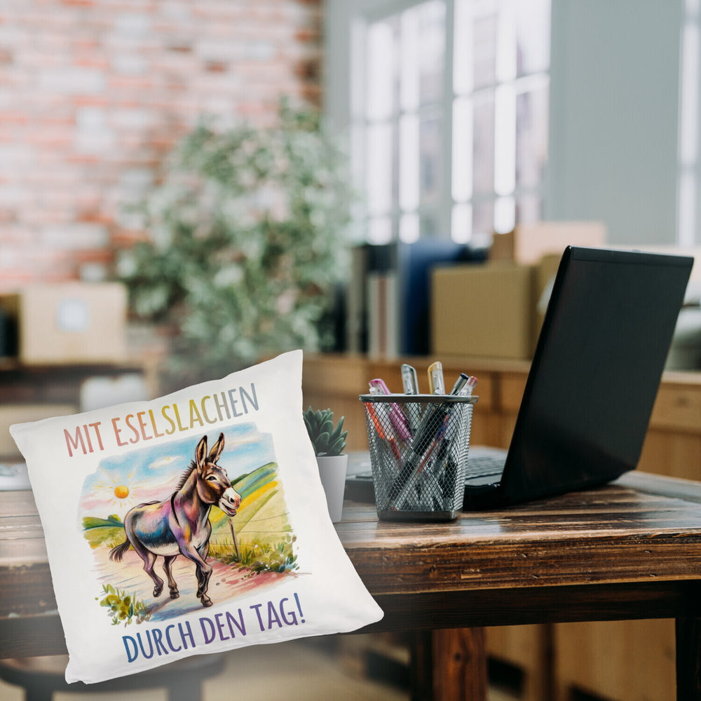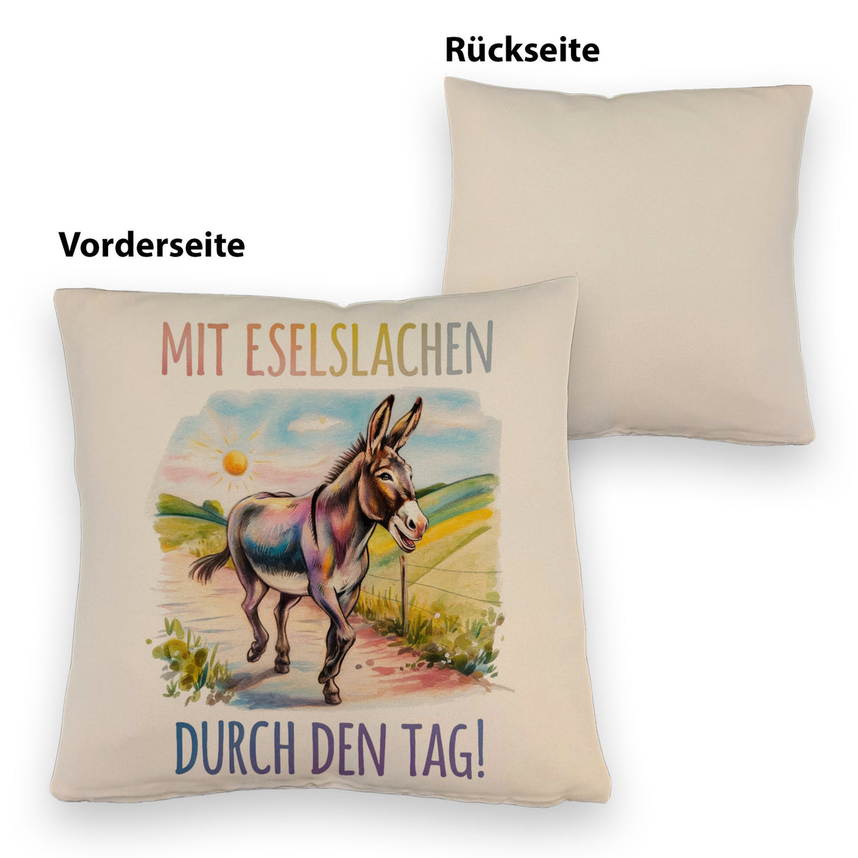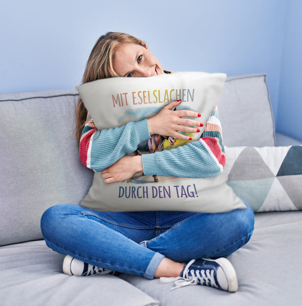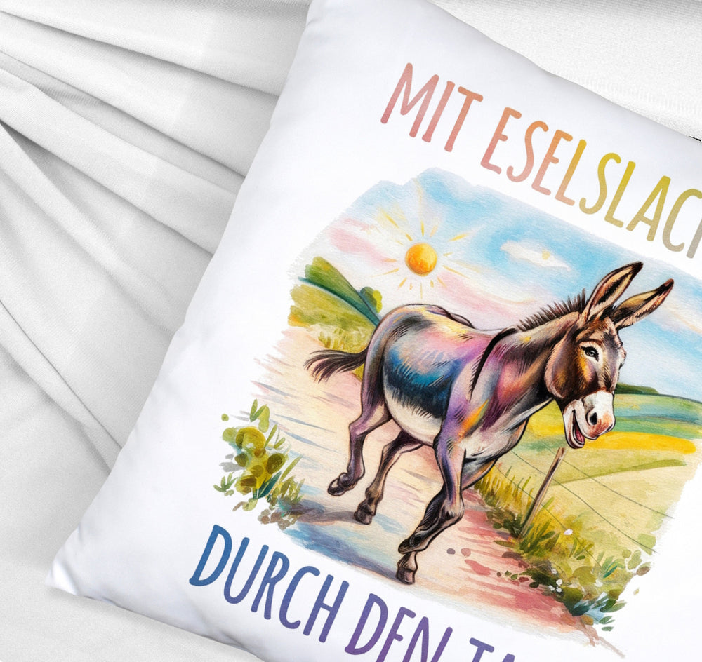 - 1x Mit Eselslachen durch den Tag Kissen in der gewählten Ausführung