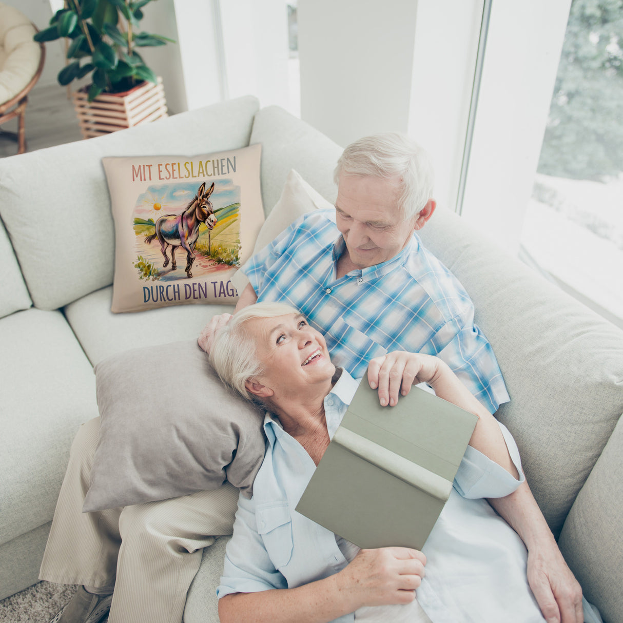 Mit Eselslachen durch den Tag Kissen - Standard ist auf Lager und wird versandt, sobald es wieder verfügbar ist