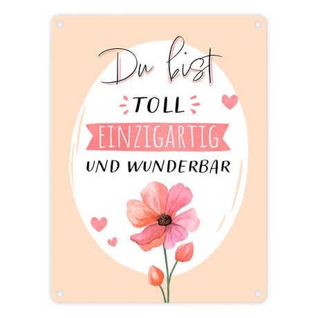 Blume Metallschild in 15x20 cm mit Spruch Du bist toll einzigartig und wunderbar