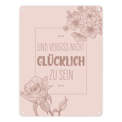 Und vergiss nicht glücklich zu sein Metallschild mit Blumen