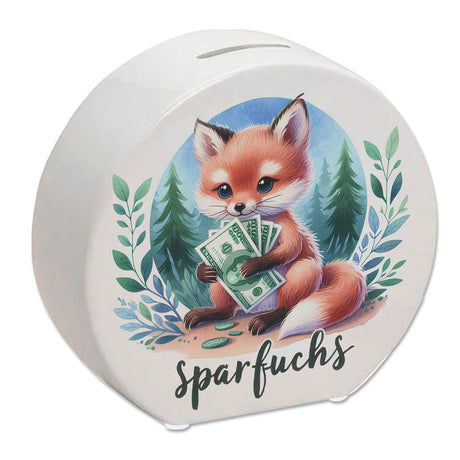 Spardose aus Keramik mit süßem Fuchs Motiv und Spruch - Sparfuchs