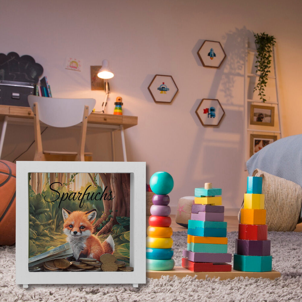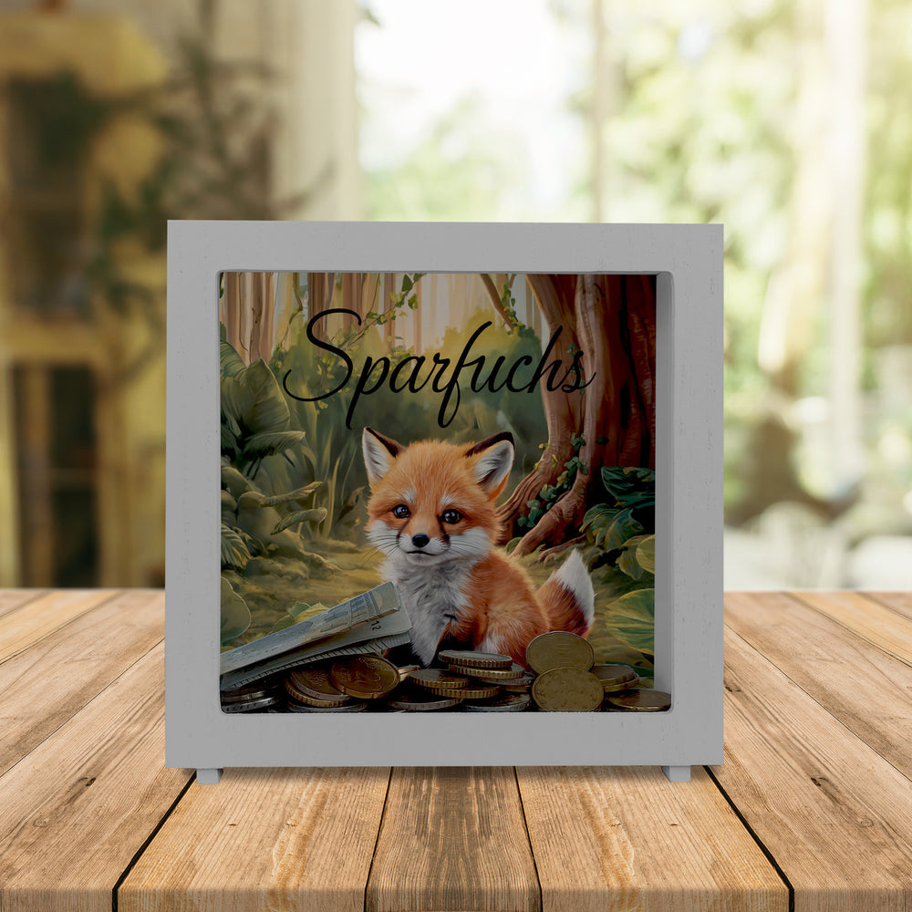 - Entdecke den "Neugierigen Fuchs im Wald" – eine zauberhafte Spardose mit einem schelmischen Fuchs! Dieser kleine Kerl namens Sparfuchs, mit seinem leuchtend orangefarbenen Fell und den markanten schwarzen Abzeichen, sitzt mitten im grünen Wald und lädt zum Sparen ein.