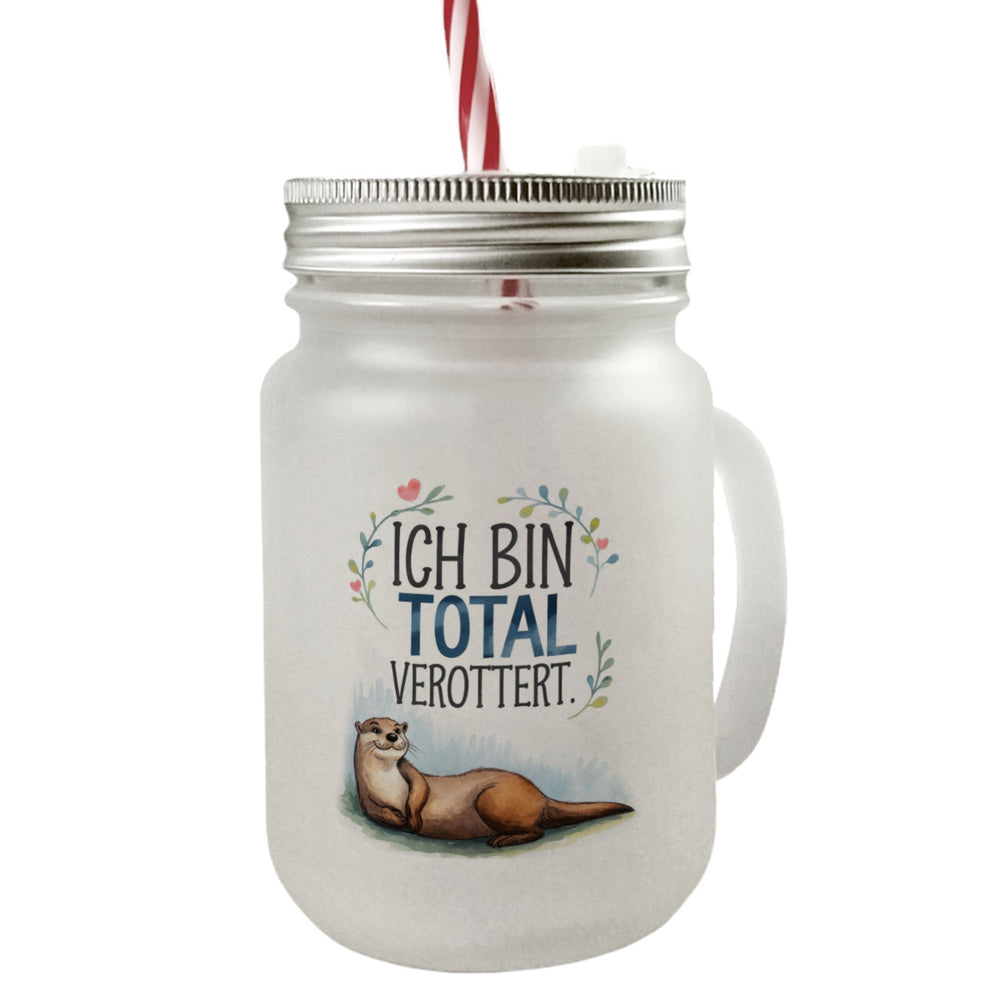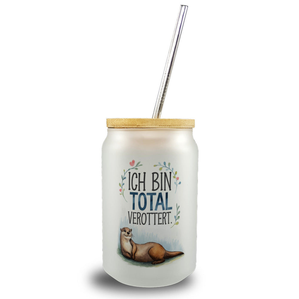 Niedlicher Otter Total verottert Trinkglas mit Bambusdeckel