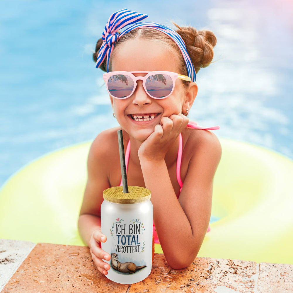 • 1x Niedlicher Otter Total verottert Trinkglas mit Bambusdeckel mit Bambusdeckel oder Henkel