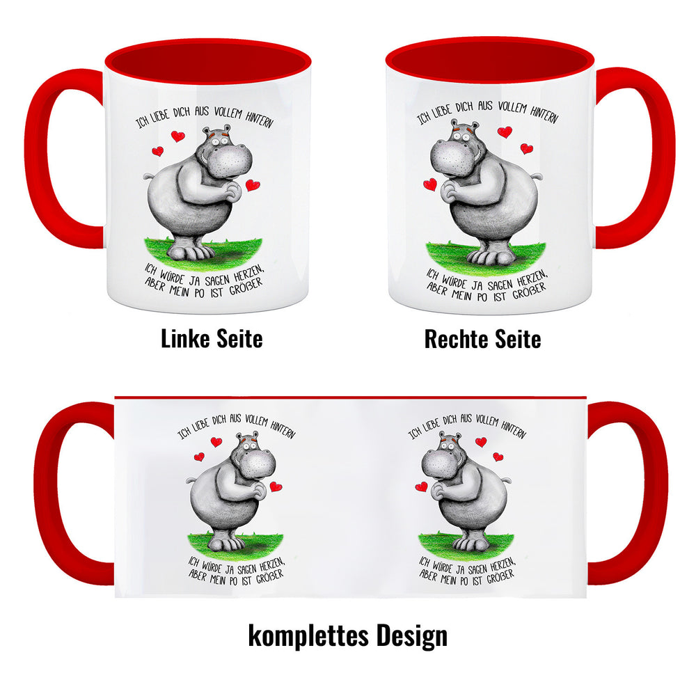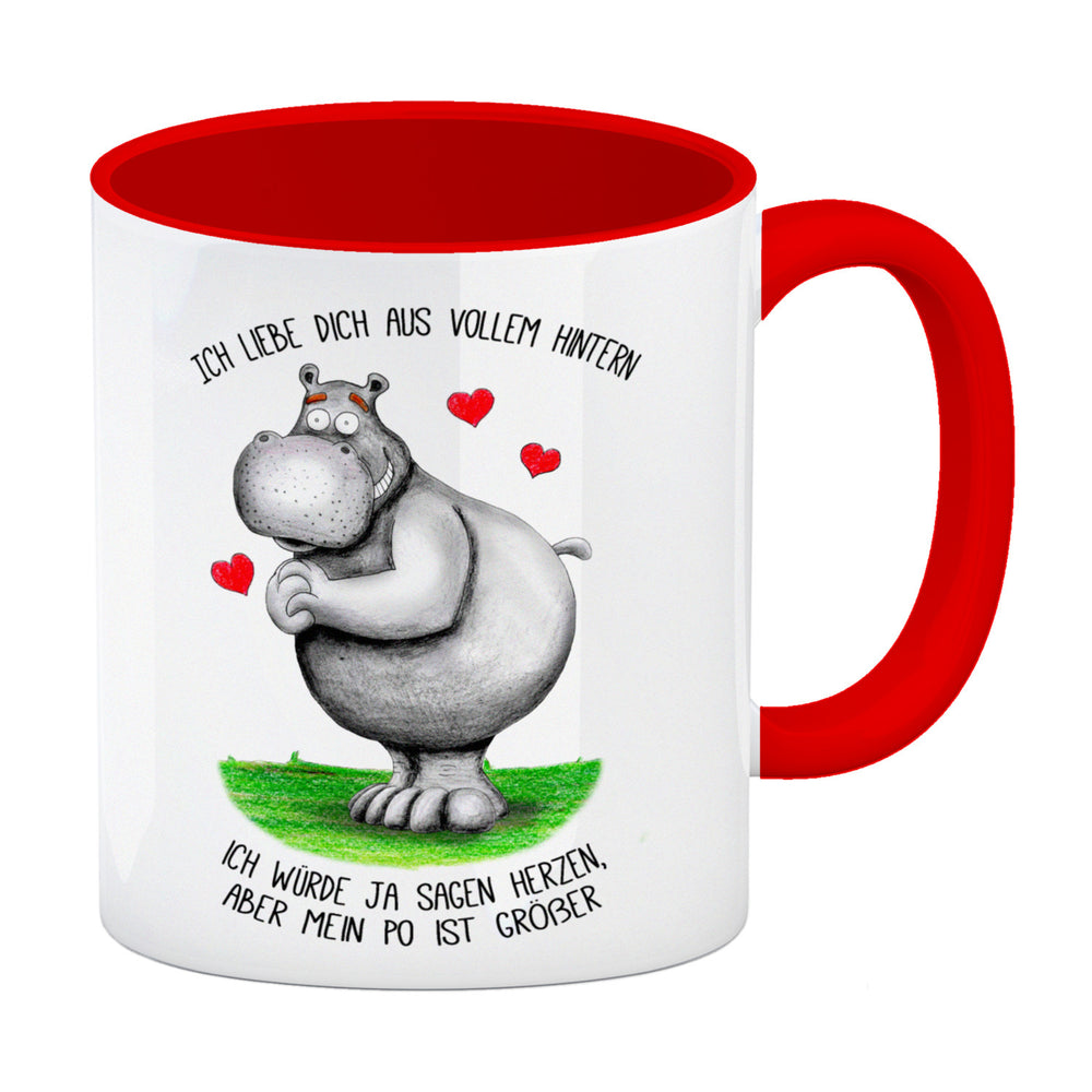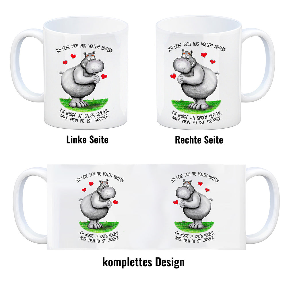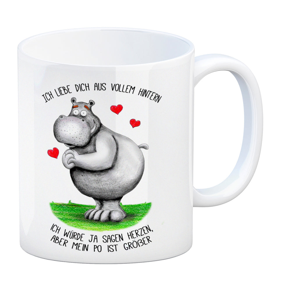 Nilpferd Kaffeebecher mit Spruch: Ich liebe dich aus vollem Hintern…
