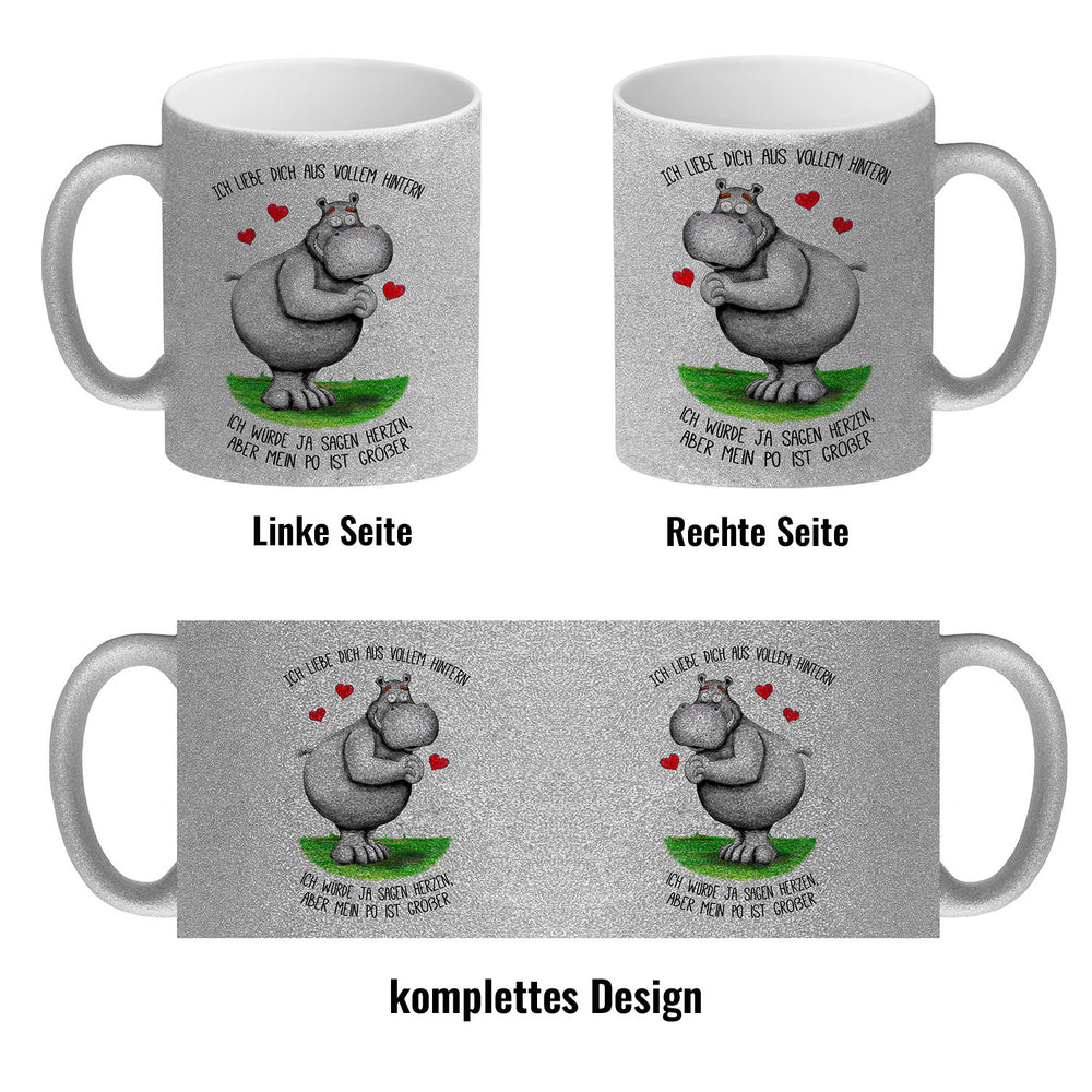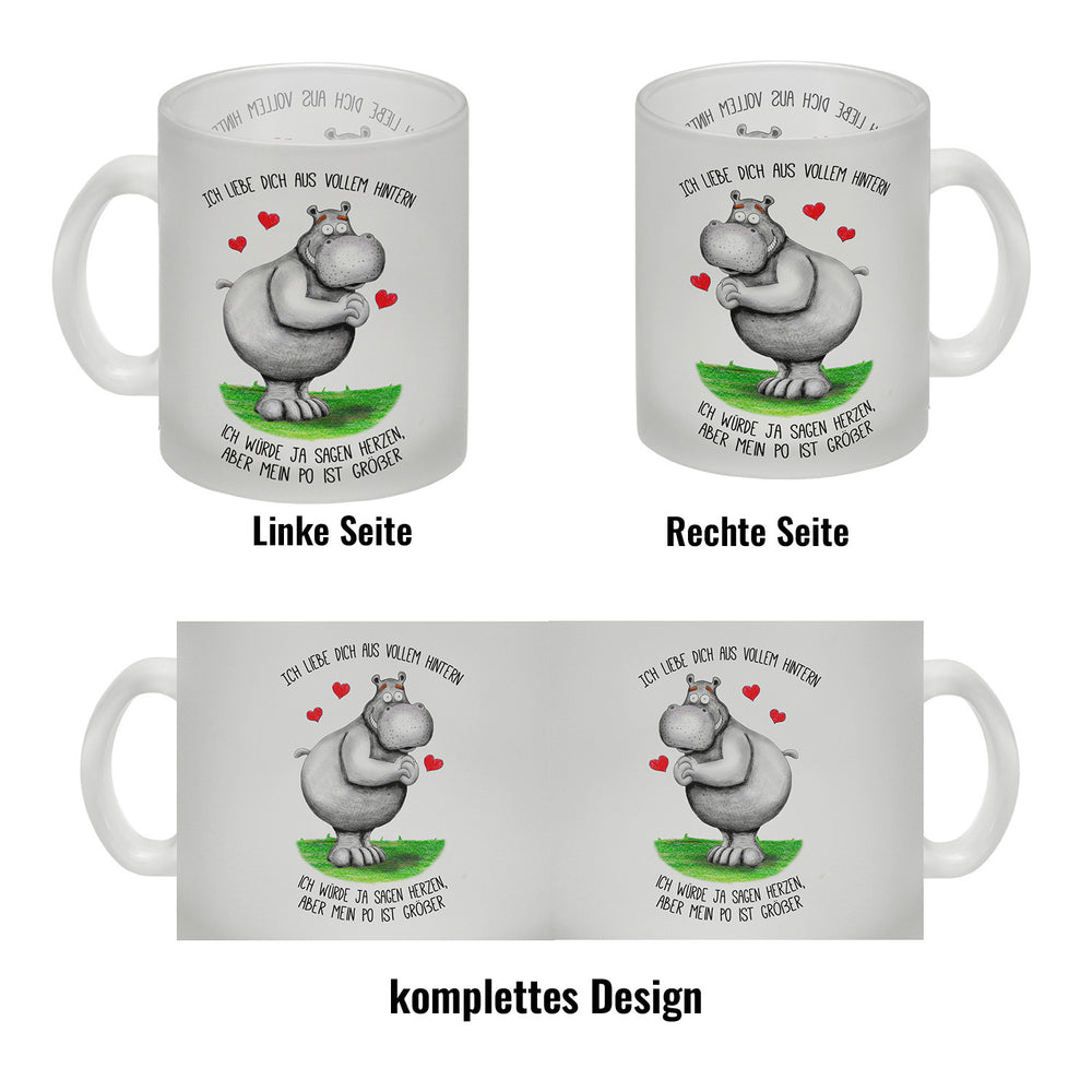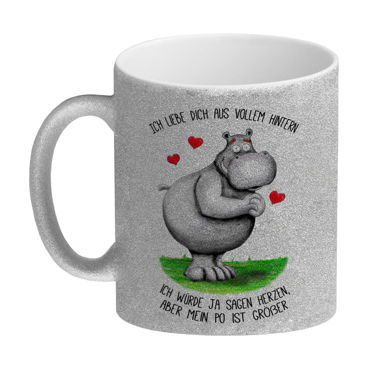Nilpferd Kaffeebecher mit Spruch: Ich liebe dich aus vollem Hintern…