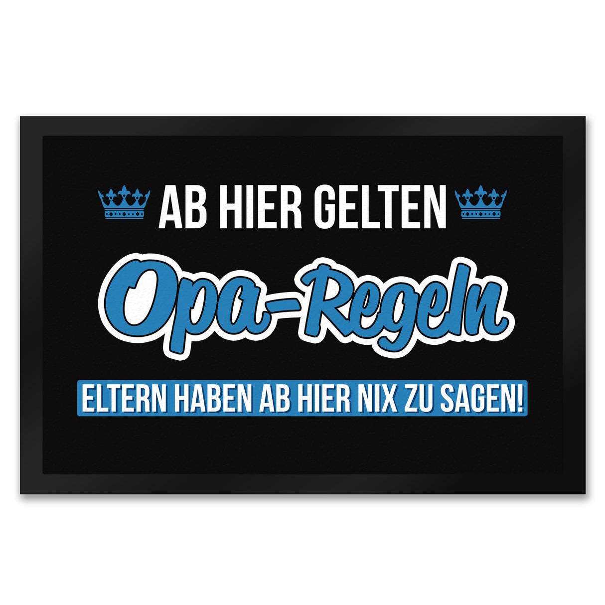 - 1x Opa-Regeln Fußmatte in 35x50 cm mit Spruch Eltern haben ab hier nix zu sagen in der gewählten Größe