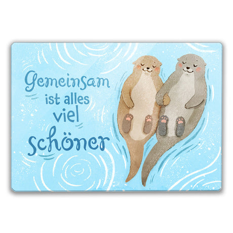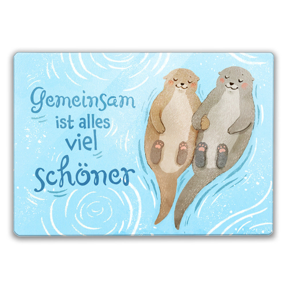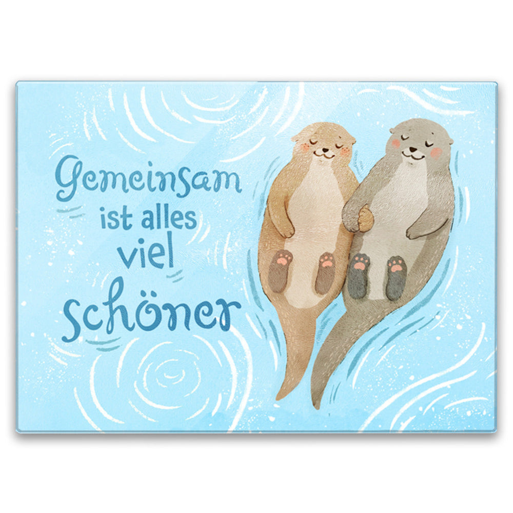 Otter Pärchen Schneidebrett aus Glas mit Spruch Gemeinsam ist alles viel schöner