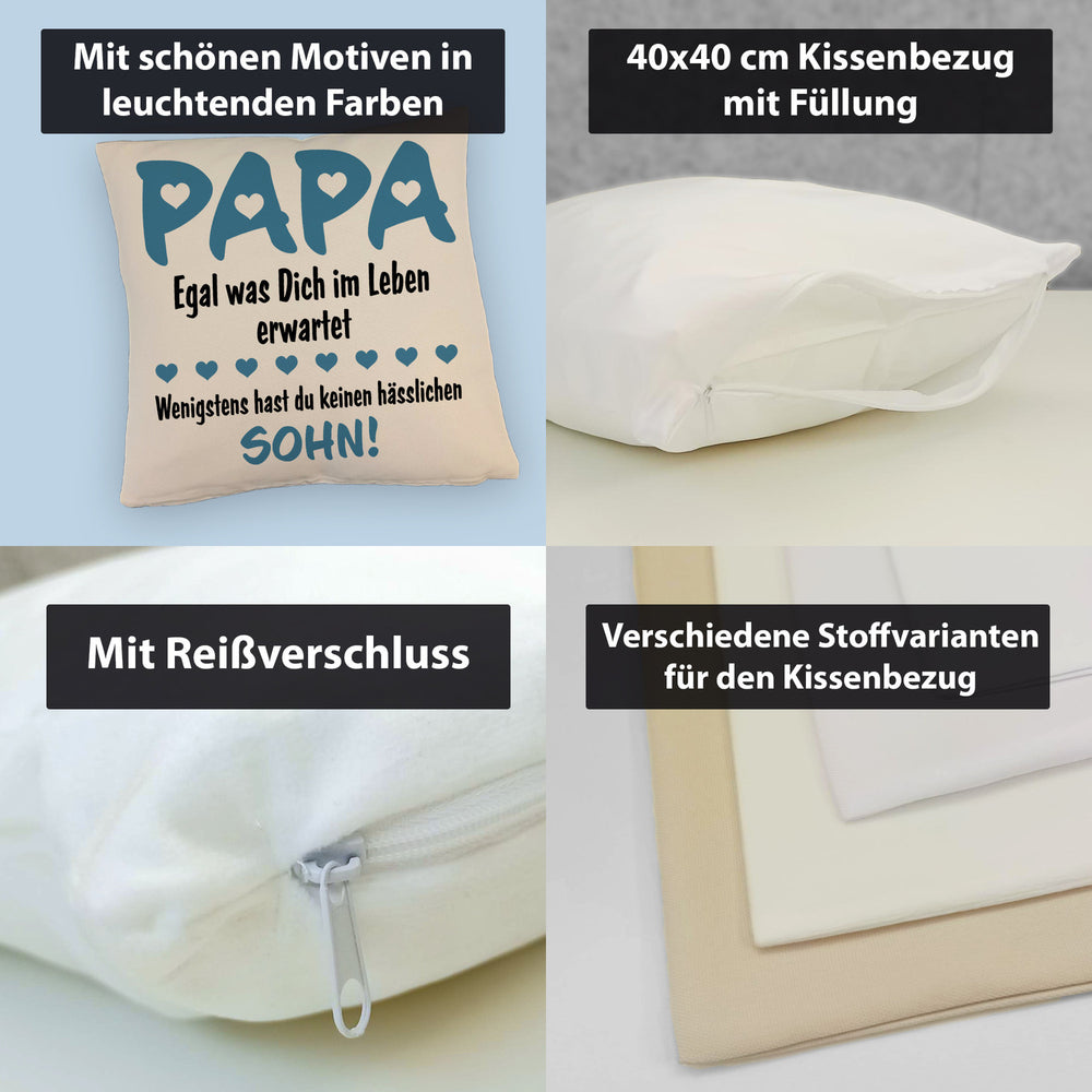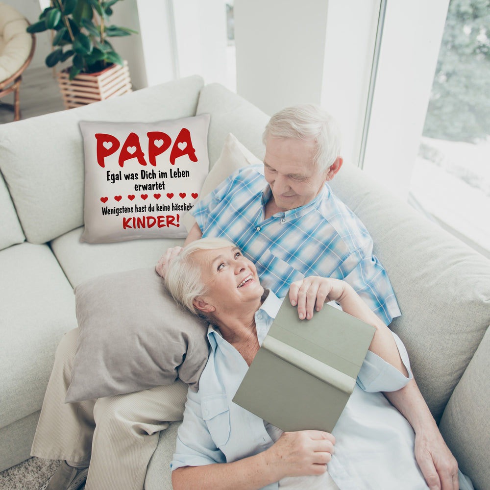 - 1x Papa wenigstens hast du keine hässlichen Kinder Kissen in der gewählten Ausführung