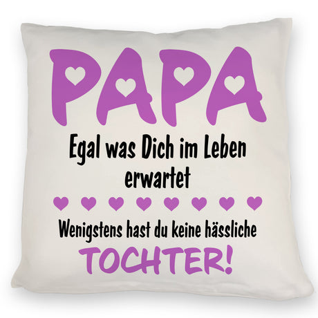 Papa wenigstens hast du keine hässliche Tochter Kissen in pink