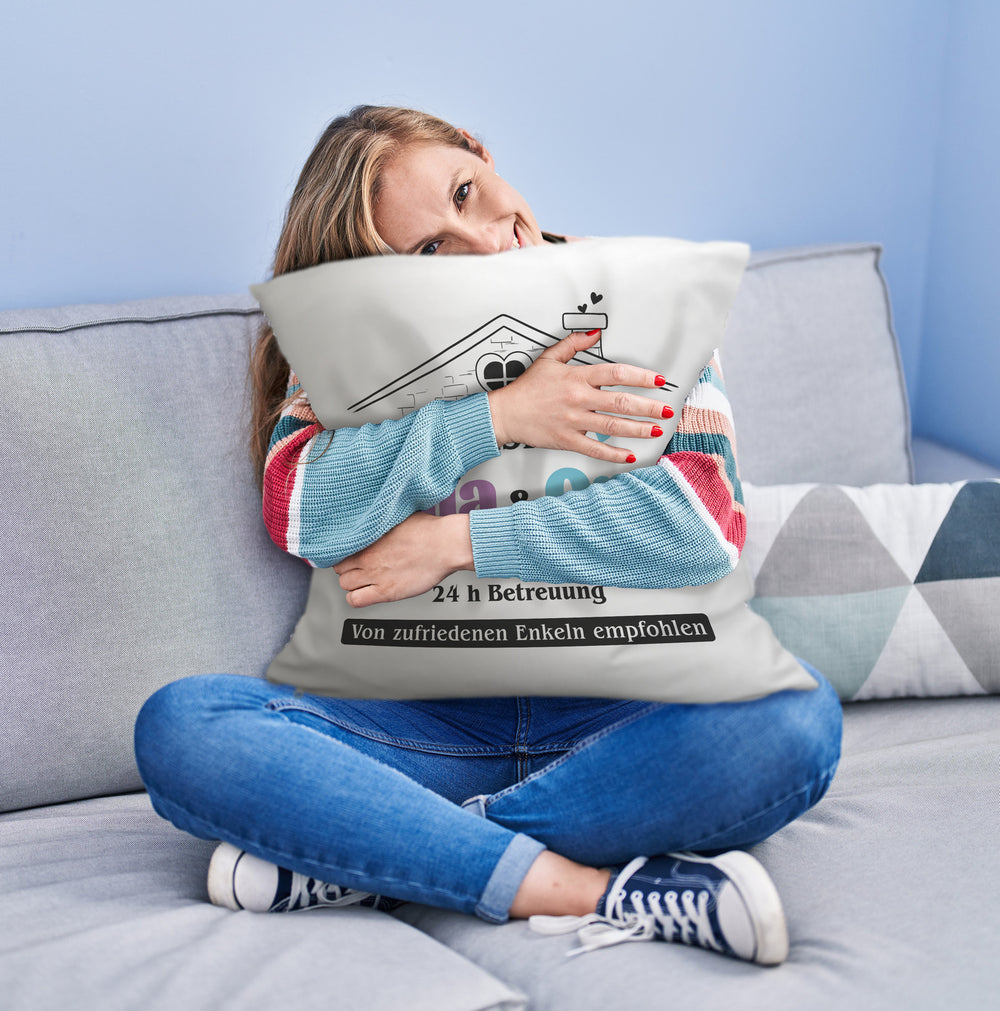 - 1x Pension Oma & Opa Kissen mit Spruch Von zufriedenen Enkeln empfohlen in der gewählten Ausführung