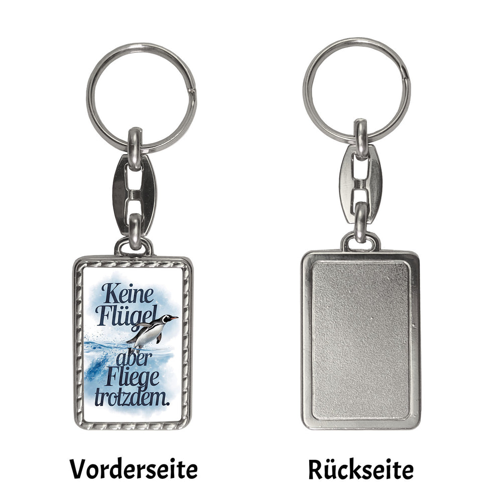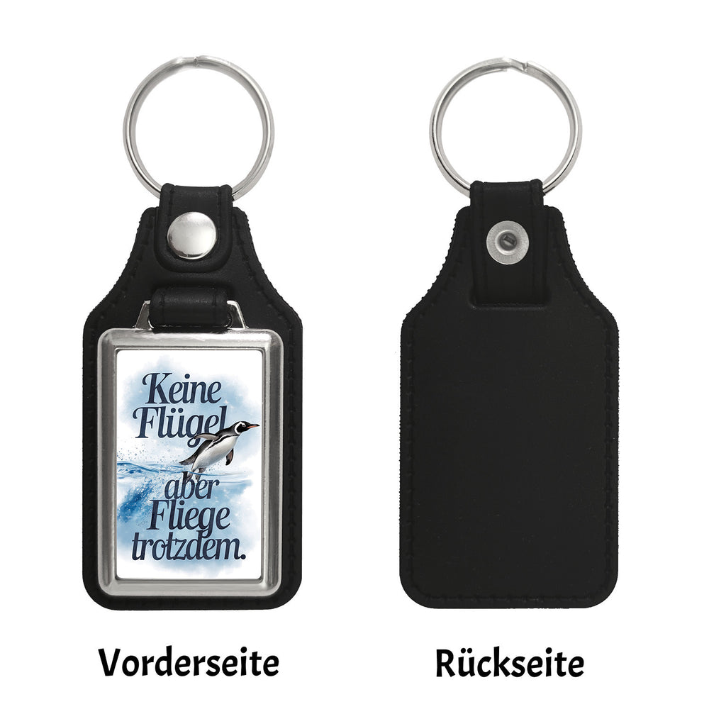 - Holen Sie sich diesen mit Liebe designten und bedruckten Schlüsselanhänger für Qualität und ein Lächeln im Alltag. Lassen Sie sich vom Lebensmotto des Pinguins inspirieren: Keine Flügel, aber fliege trotzdem. Ein Muss für jeden Tierfreund und ein Hingucker an jedem Schlüsselbund.